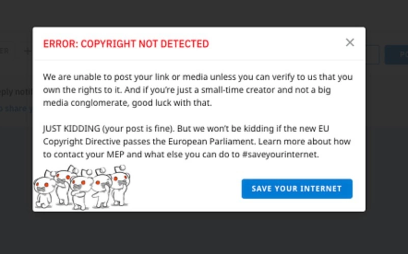La baza acestor îngrijorări stau două articole de propunere legislativă. Unul ar oferi publicațiilor de știri o așa-zisă „taxă pe link”, adică orice fragment dintr-un articol va trebui să fie licențiat și plătit de către oricine îl folosește. Până și pe blogul tău personal va trebui să-ți licențiezi folosirea titlului unei știri, iar Scena9 de exemplu, ar putea fi dată în judecată de Kanal D pentru că a scris critic despre un articol de pe site-ul lor. Celălalt articol de lege ar obliga orice platformă online (Youtube, Instagram sau forumul mamei tale despre grădinărit) să se asigure că nimic de pe site nu încalcă drepturile de autor. Imaginează-ți un sistem automatizat care decide ce poate fi urcat și ce nu, ca filtrul care cenzurează nuditatea pe Facebook - numai că pe steroizi. Sistemul va trebui să compare cu baza sa de date orice postare, fotografie sau video și să blocheze orice upload, dacă e prea similar cu altul deja existent. Ceea ce ar duce inevitabil la multă cenzură. Adio meme, comentarii politice sau filmări de la concert.
