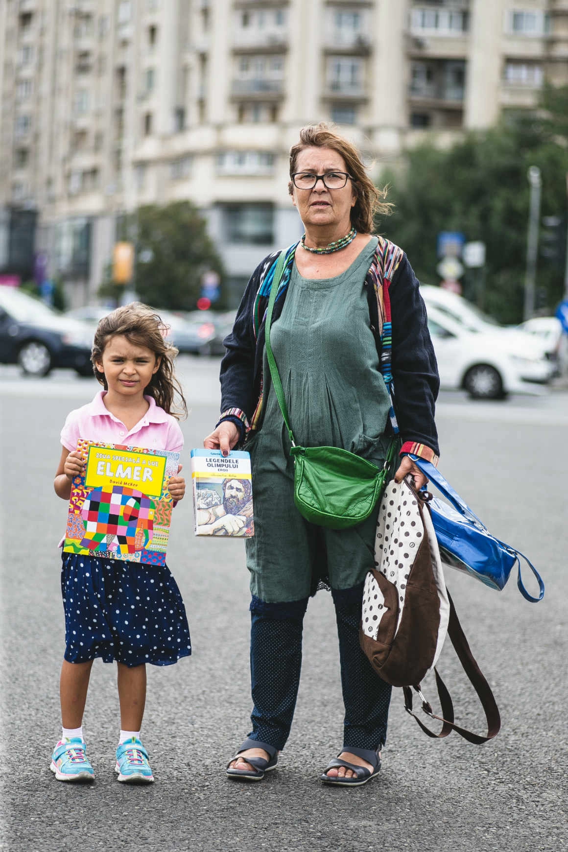 Bunica: Și cine ne-a adus sa aducem cărți, asta nu ți-am mai spus ție...Ne-a făcut un nene, uite acolo [arată spre Guvern, n.r.], care nu știe să scrie deloc. Scrie cu greșeli multe. Și el ne-a făcut un bine, le face un bine copiilor care vor să învețe.