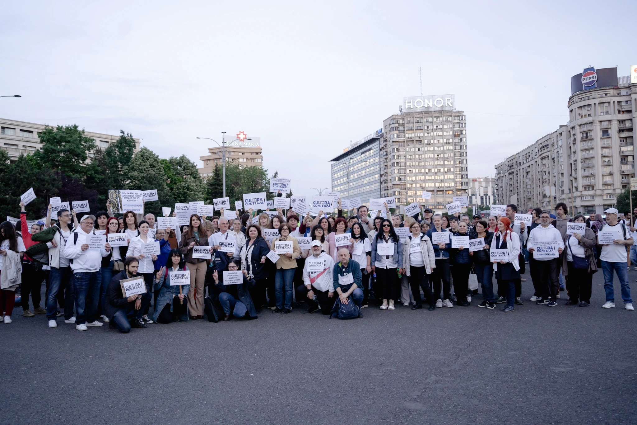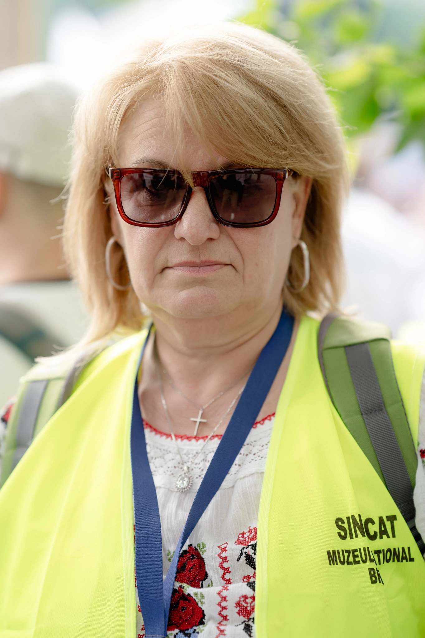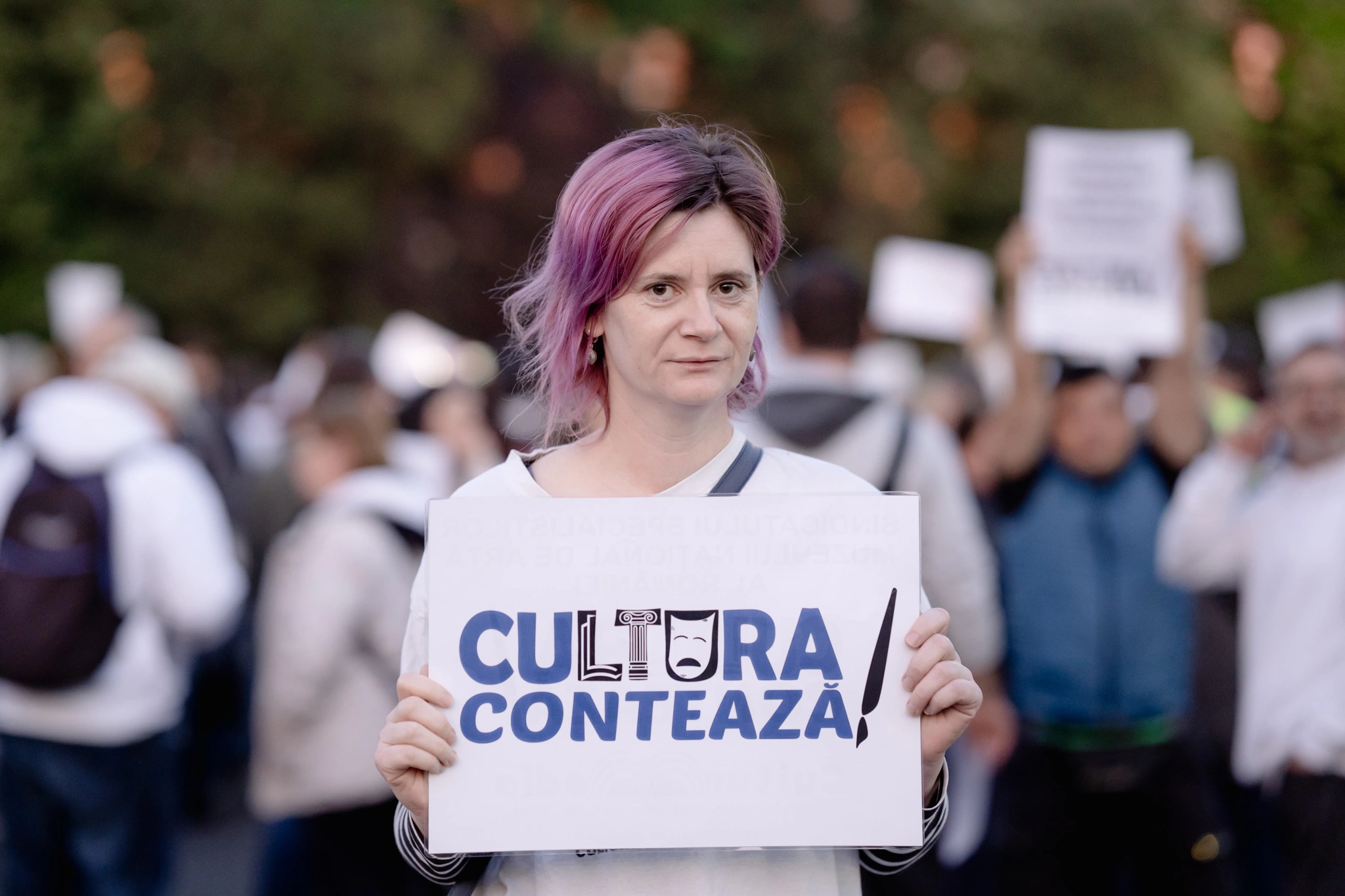 E la protest și în calitate de specialistă a MNAR, dar și ca să-și reprezinte colegii din sindicat. O parte au lucrat în timpul zilei și au venit aici după orele de program. Spune că nu cer doar salarii mai mari, „în mod oportunist”, ci „finanțarea corectă” a muzeelor și bibliotecilor, care funcționează de 30 de ani cu prea puțini bani și, în consecință, multe dintre ele cu prea puțini angajați. Și nu-i ușor să găsești personal pentru instituțiile astea, pentru că angajații lor se supracalifică în timp.