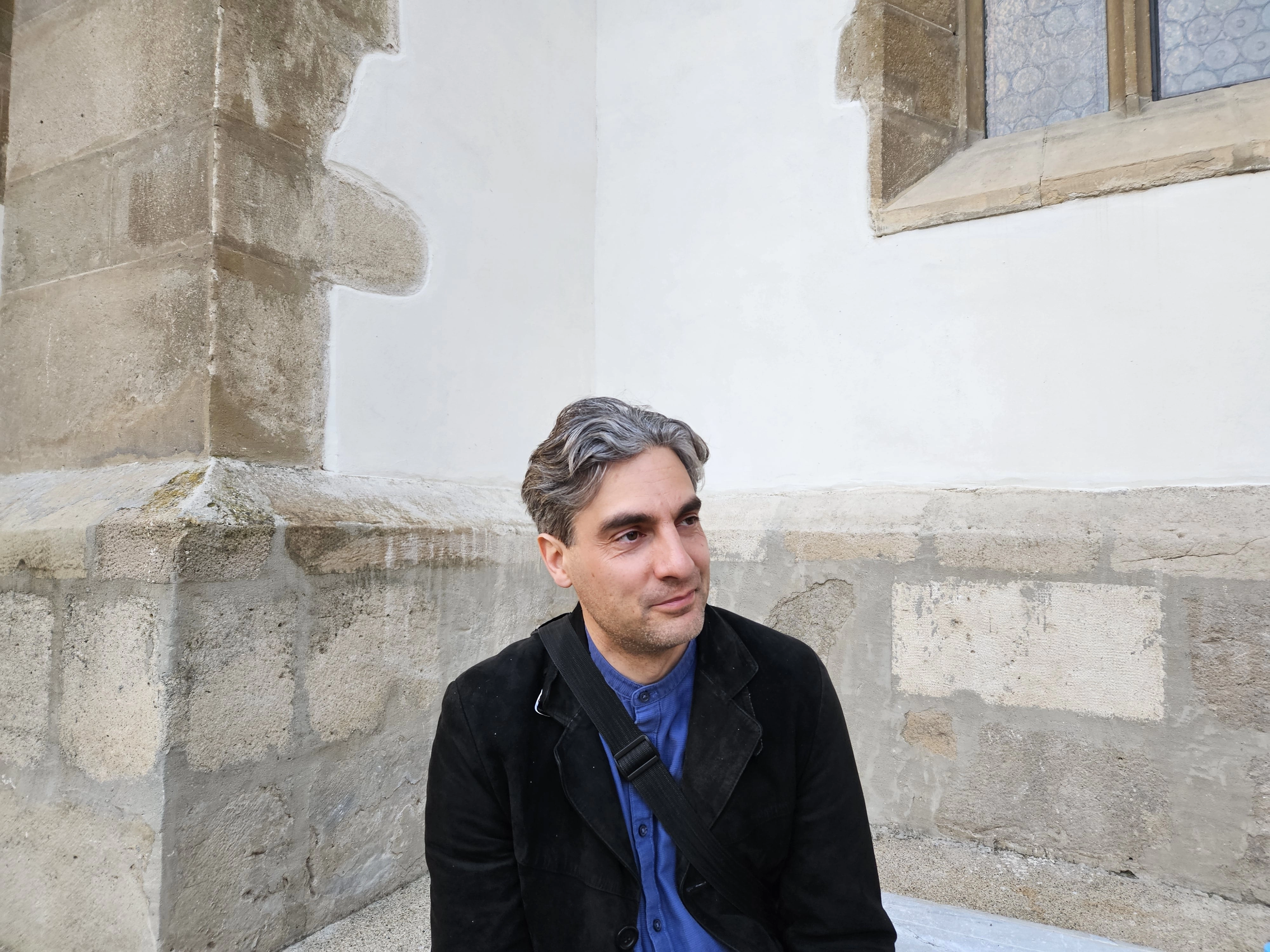 Mihail Antonio este solist instrumentist la corn și lucrează la Filarmonica de Stat din Sibiu din 2006, iar în ultimii ani a protestat în multe feluri față de conducerea instituției. În 2023, Antonio a parcurs cu bicicleta 130 de kilometri din Sibiu până la Deva, unde orchestra urma să aibă un concert în deplasare, ca să atragă atenția asupra problemelor sale și ale colegilor lui. În primăvara aceasta, când ne-am întâlnit la Sibiu, Antonio purta o mustață în stil Hitler, pe care era hotărât s-o păstreze până când va scăpa de „dictatura din Filarmonică”.