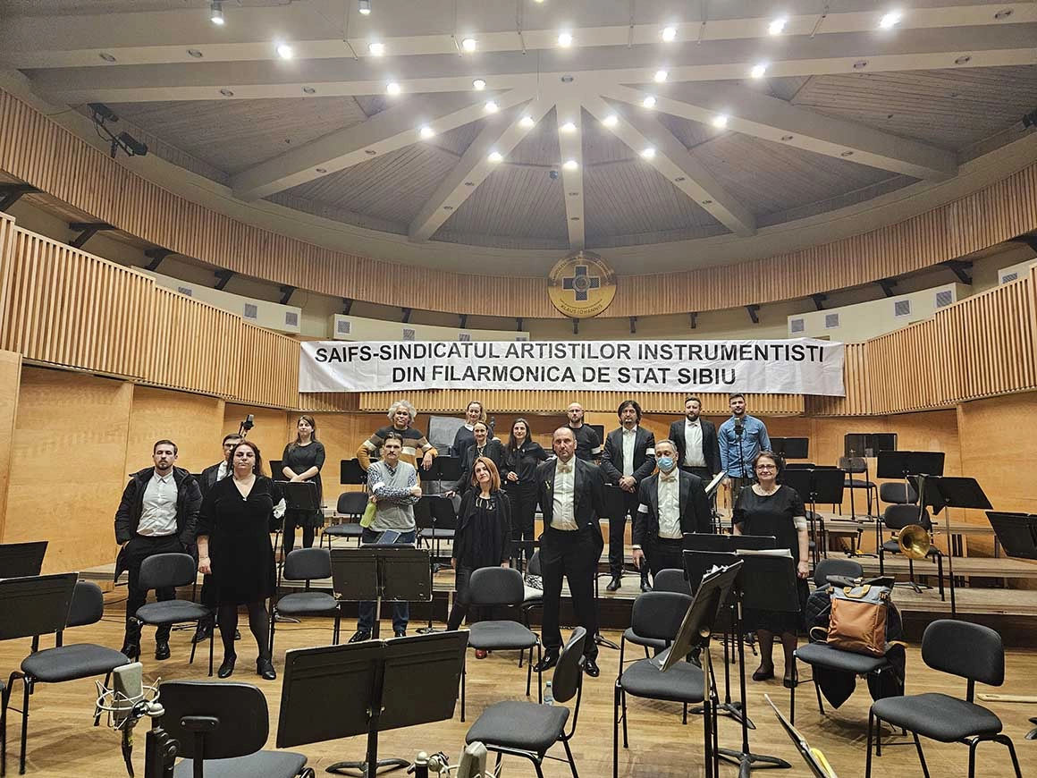 De la începutul anului, mai bine de jumătate din muzicienii Filarmonicii din Sibiu protestează. Artiștii din sindicat cer conducerii să semneze contractul colectiv de muncă, în lipsa căruia spun că sunt suprasolicitați și nu au destul timp să repete pentru zecile de concerte din program. Aceștia îl acuză pe dirijorul Cristian Lupeș, directorul Filarmonicii, de lipsă de comunicare, de conducere dictatorială și comportamente abuzive. Cele 13 greve de avertisment, cele 93 zile de protest în fața instituției unde apoi merg la repetiții și susțin concerte, și zeci de procese deschise de angajați împotriva conducerii Filarmonicii sunt o oglindă fidelă a acestui conflict care a divizat orchestra, dar și lumea culturală din Sibiu.