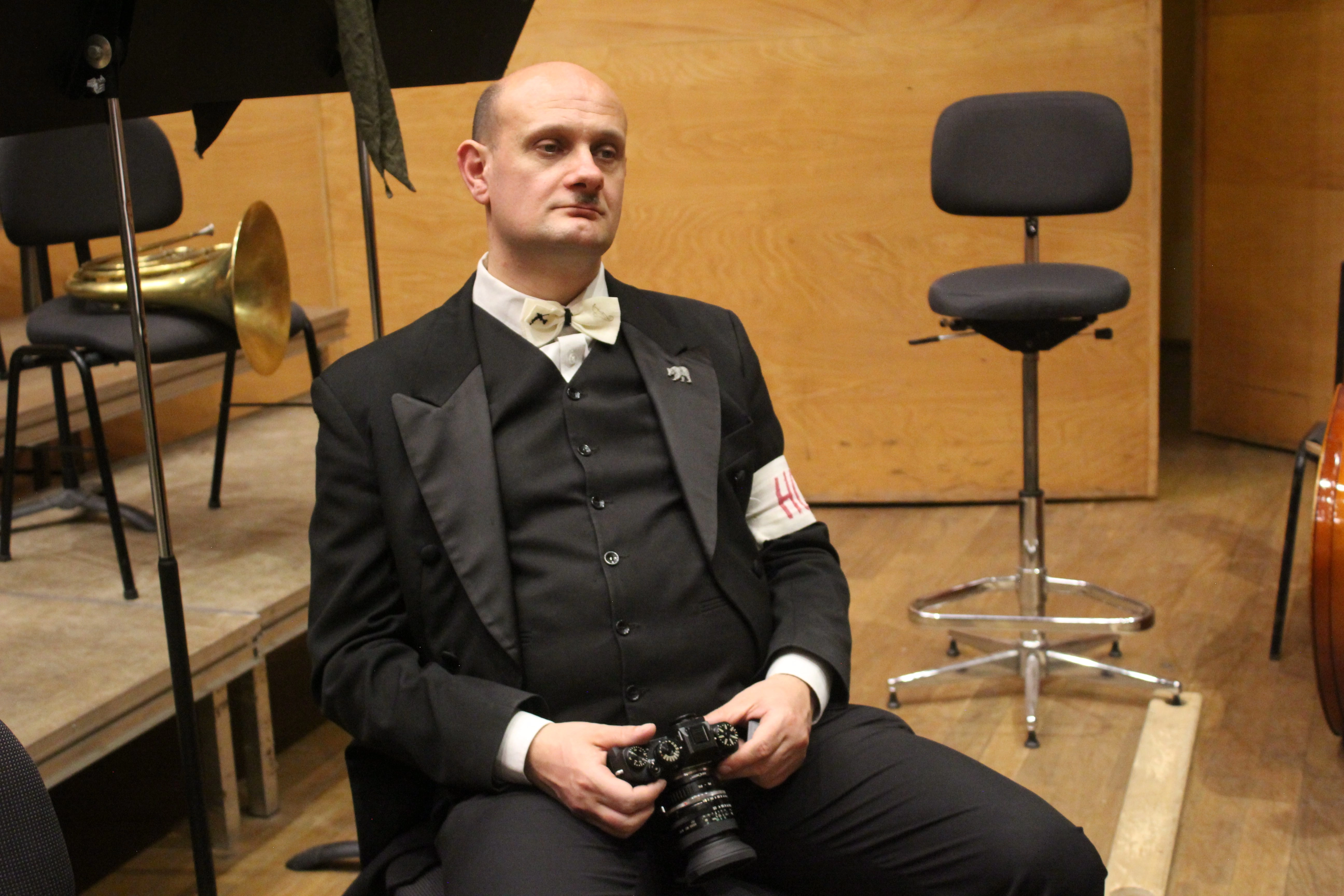 „E târziu și s-a făcut seară. Mâine avem treabă”, anunță unul dintre muzicieni după două ore în care s-au plâns, s-au enervat, au făcut glume. Scaune trase, rochii care foșnesc, sunet de tocuri pe podeaua din lemn, în timp ce lumea se îndreaptă spre ieșire. Înainte să plece, își reamintesc unul altuia în șoaptă că a doua zi urmează să se întâlnească în Piața Mare a orașului pentru un flashmob de protest. „Camerele de filmat au și urechi”, îmi explică artiștii, referindu-se la camerele de supraveghere care au fost instalate anul trecut prin toată filarmonica.