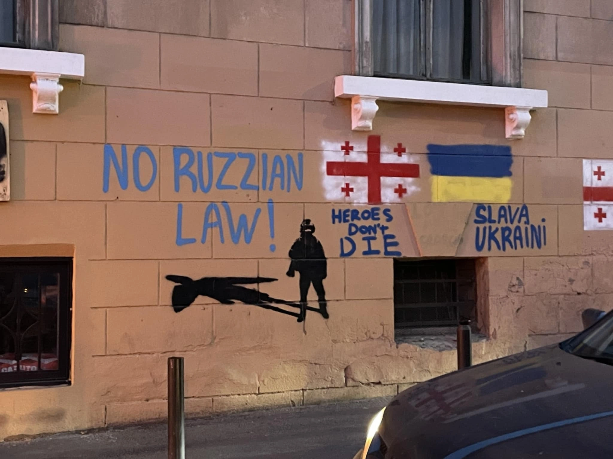 Zidurile sunt pline de graffiti care-l înjură pe Putin într-o mie de feluri, exprimă solidaritate cu Ucraina și le cere rușilor să plece.