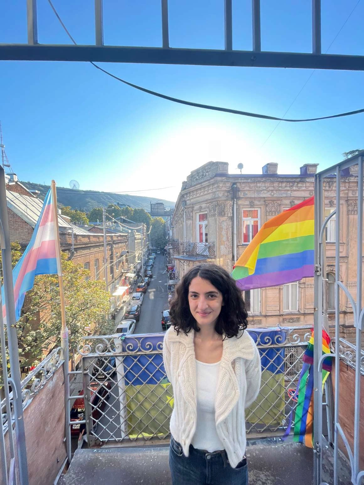 Din balconul Tbilisi Pride se văd munții și orașul străvechi și o stradă liniștită care funcționează ca safe space pentru comunitatea LGBT.
