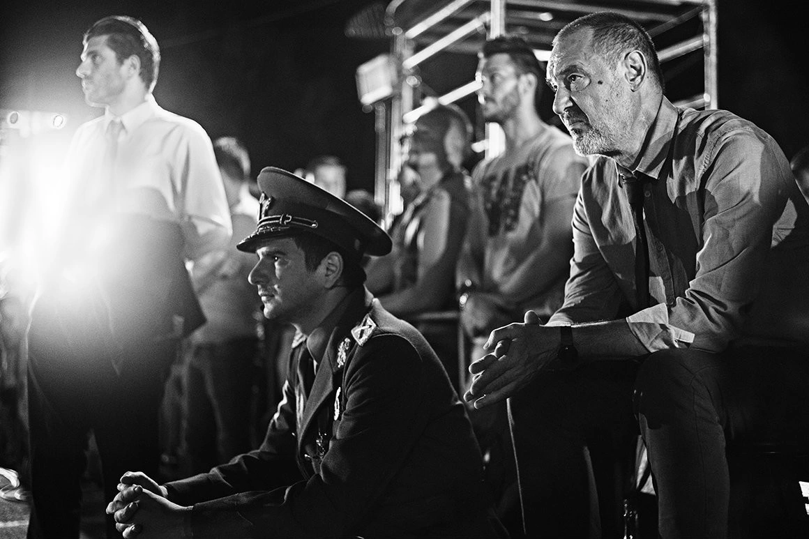 Mariana Marin, o regizoare interpretată tenace&seducător de actrița Ioana Iacob, lucrează la un spectacol-reenactment mai puțin ortodox al masacrului de la Odessa, inclusiv al unui episod în care militarii români îi duc pe evrei într-o baracă, unde le dau foc. Mariana se contrează în câteva scene excelente cu domnul Movilă, funcționar la primărie, jucat briliant de (regizorul de teatru) Alexandru Dabija, un avocat mucalit al diavolului care îi pune constant bețe în roatele argumentelor ei istorice și morale. E unul dintre felurile lui Jude de a-și chestiona propriul demers: Oare chiar așa a fost? Ce rost mai are să vorbim despre asta? Nu mai bine făcea ceva frumos, să placă la toată lumea?