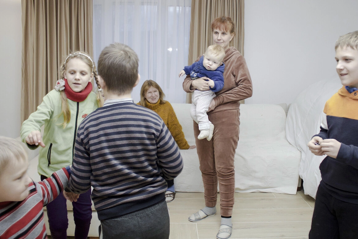 [Spre finalul discuției, își face apariția și bunica Tatianei, Valentina - „babușca”, cum o strigă în familie. E în continuare obosită de pe drum, dar încă are energie să se joace cu strănepoții. Îl ia pe Vadim în brațe și povestește cum au decurs ultimele zile pentru ea]