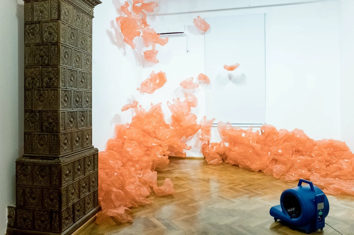 Fac un bilanț. Expoziția de la etaj folosește repertoriul formal al post-minimalismului, plus desenul, poate rupt din imaginarul SF, aici cu interes pentru ecologie și tehnologie, adică pentru efectul de mediu al producției materiale. La nivelul ăsta, plasticul pare să înglobeze, la nivel palpabil, acea violență malefică umană.