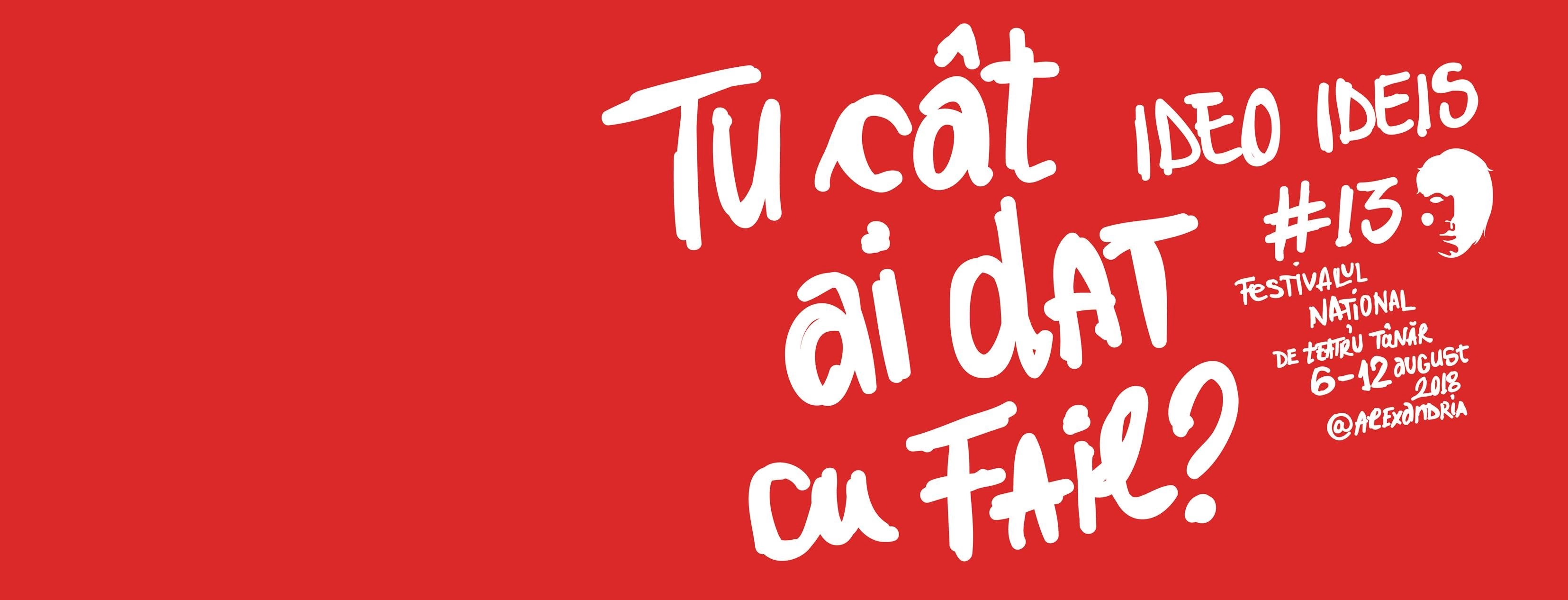 Am fost la Ideo Ideis, festivalul național de teatru tânăr din Alexandria, jud. Teleorman, și anul trecut și acum doi ani. E tare să mergi la Ideo – și nu doar pentru party-ul de final de la ștrand, pentru repetarea compulsivă a imnului festivalului (Suede, Beautiful Ones) sau pentru spectacolele de teatru profesionist invitate (printre care anul ăsta se numără Artists Talk, de Gianina Cărbunariu, Stă să plouă, de Lia Bugnar și Pescărușul, în regia lui Andrei Șerban). În plus, o să fie și cu proiecții de film (Un pas în urma serafimilor și Câteva conversații despre o fată foarte înaltă) și cu masterclass-uri (cu Radu Jude și Mihai Bobonete), ca să nu mai vorbim de serile povestitorilor (cu Dan Perjovschi și Vlad Voiculescu, printre alții). Nu, e tare la Ideo pentru că-ți dă un boost maxim de energie – iar sloganul de anul ăsta, „Tu cât ai dat cu fail?” e la fel de provocator și pentru tinerii din trupele participante și pentru invitați, dar și pentru spectatori. Așadar:
