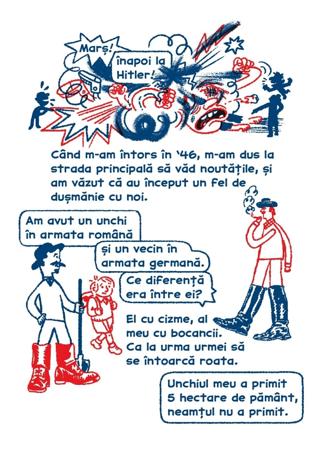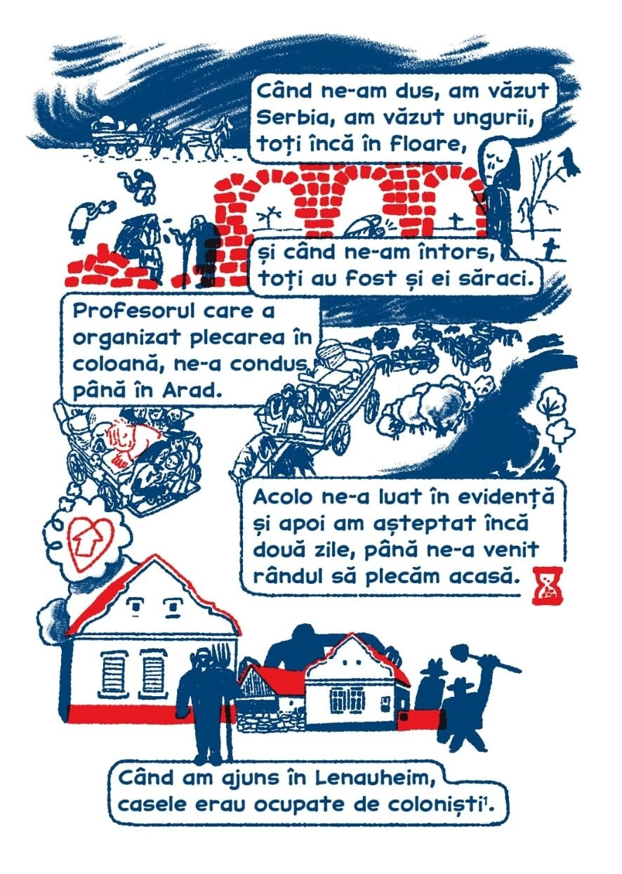 Săptămâna asta, publicăm pe Scena9 o serie de benzi desenate explorează povești de viață & migrație din Banat. Am început cu un tur pe fast forward prin istoria Banatului, am continuat cu o istorie personală despre deportarea în Bărăgan, iar azi aflăm ce însemna să fii refugiat din România la mijlocul secolului trecut.