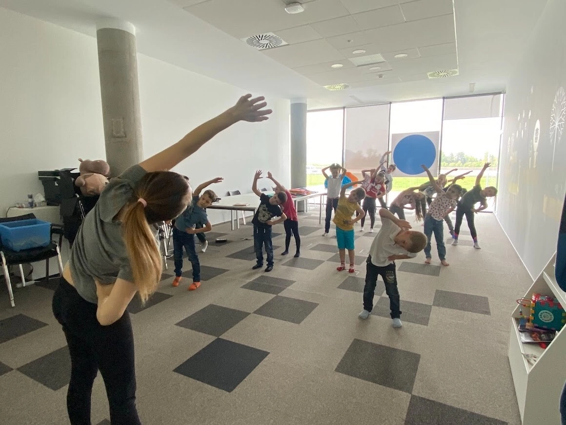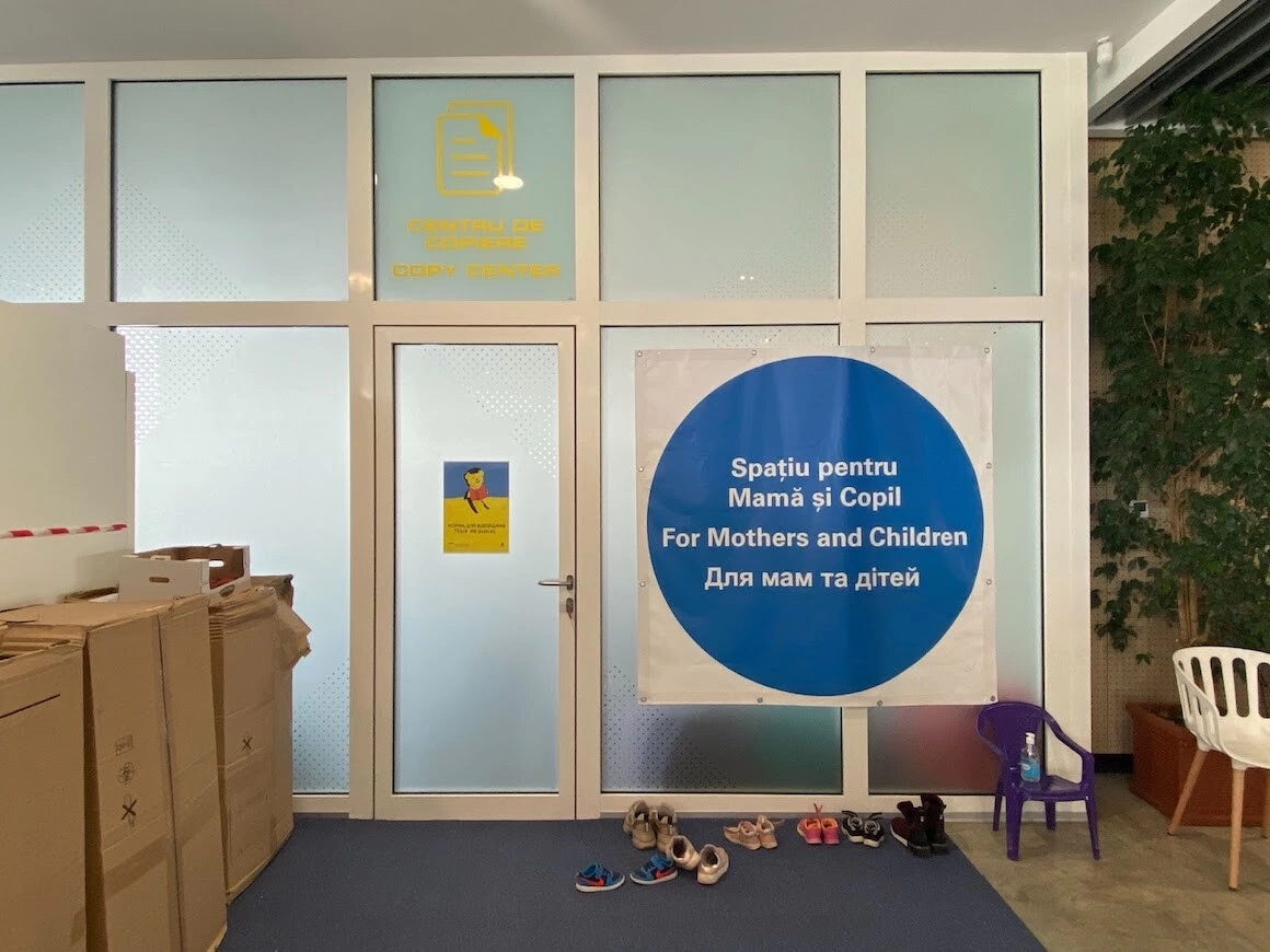 Elina le explică ușor rușinată contextul demersului. Zilnic, în spațiu, sunt mai mulți copii decât adulți. Copiii au mare nevoie de activități structurate, în limba ucraineană, ca să-i țină ocupați și feriți de știri despre bombardamente. La locul de joacă amenajat în spațiu sunt mereu prezenți voluntari români care încearcă să-i distreze și să-i implice în jocuri. Chiar și cei mai extrovertiți se retrag după câteva minute, pentru că le e greu să comunice. Cei mici fug după mamele lor, cei mari se adâncesc în telefoane. Sunt copii care preferă să se joace singuri cu un pluș sau să coloreze. Alții dau ture cu bicicleta prin spațiu, spre disperarea adulților. Mai sunt și cei care se joacă de-a războiul, între tranșee construite din bean bags, cu căști de pompieri pe cap și pistoale de jucărie în brațe.