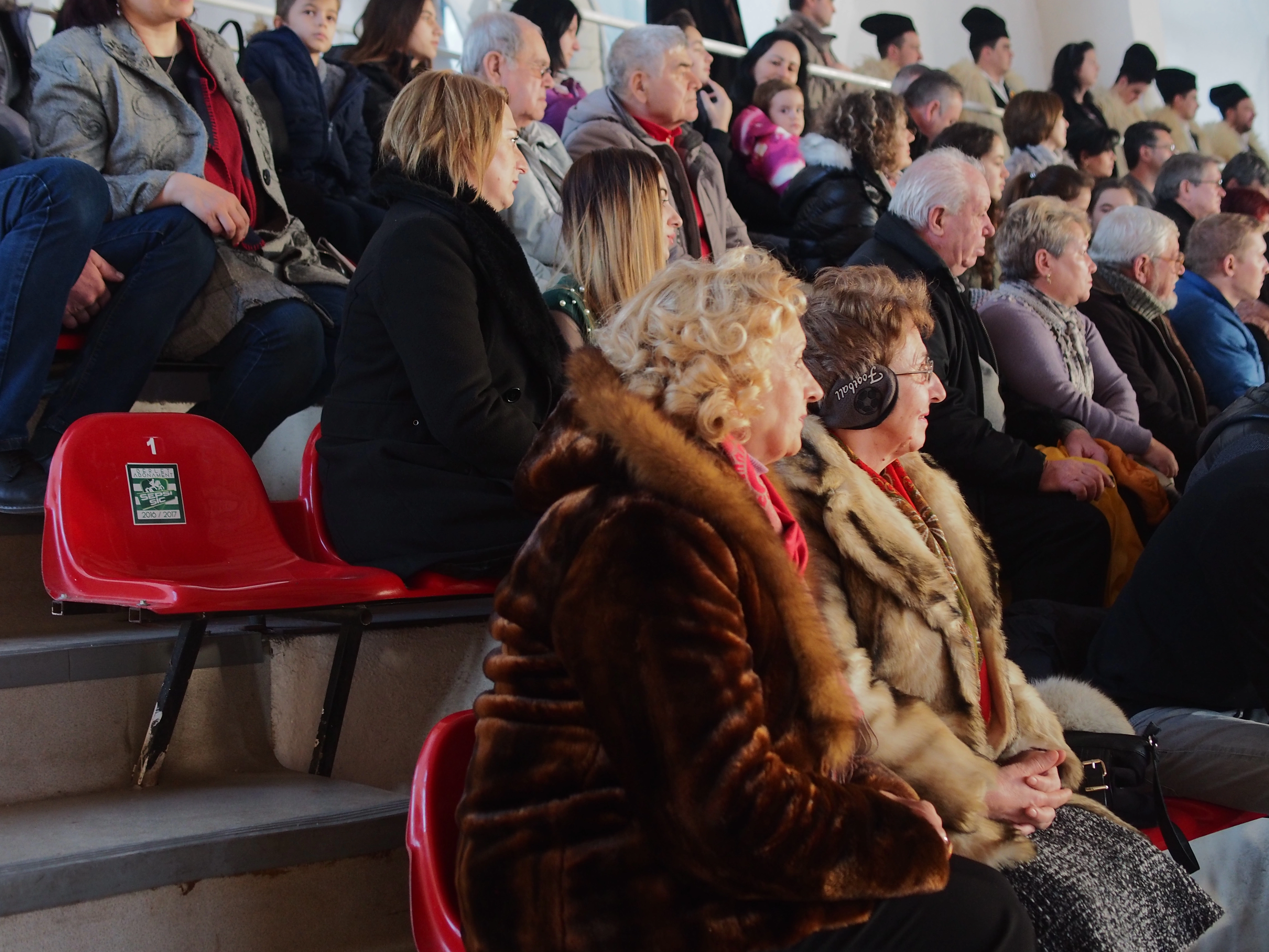 „Eu nu știu de conflicte, eu am prietene foarte bune, eu am vecine foarte bune, nu vă luați după ce se spune, poate sus acolo se vede sub altă formă, aici e altă formă”, spune Zoica în fața tribunelor din sala sporturilor.