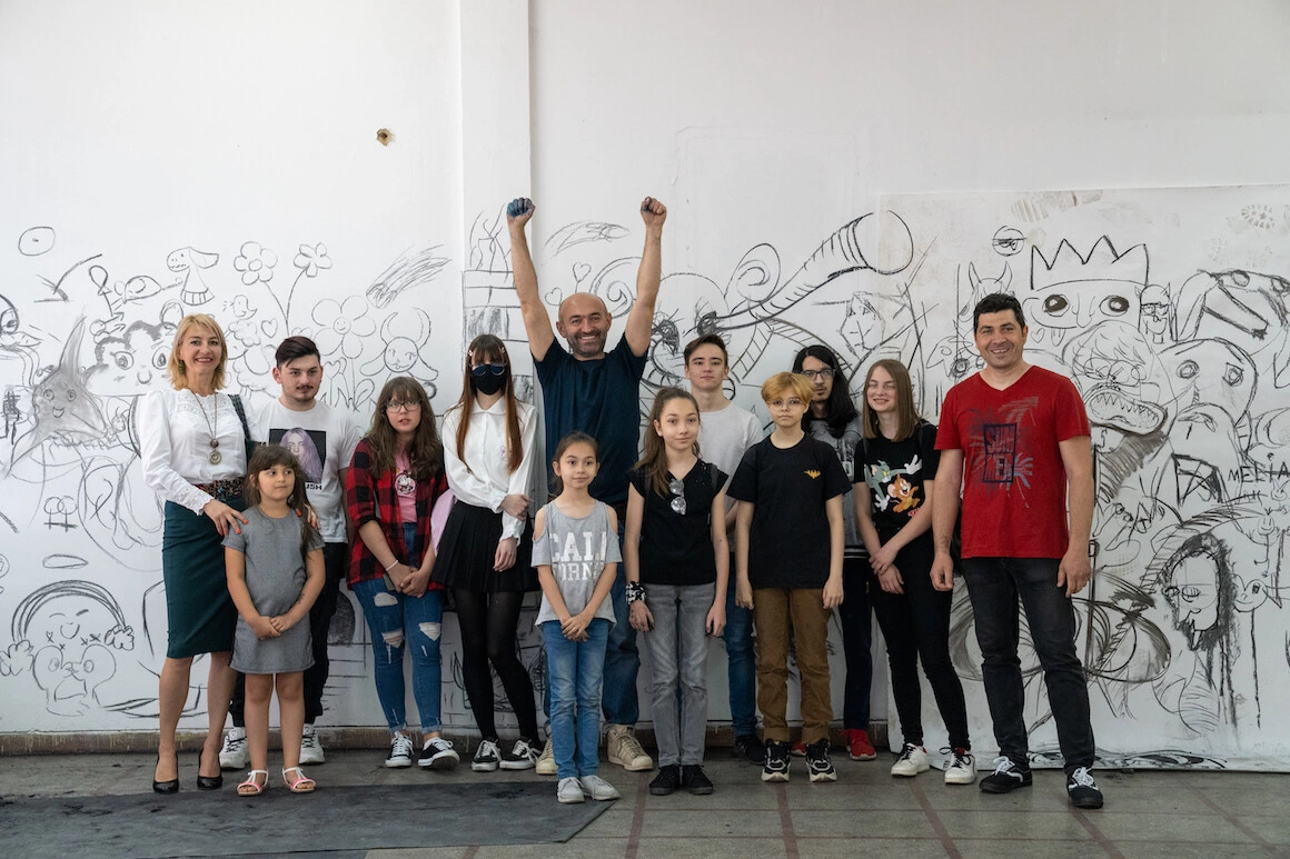 Se relaxează și ceilalți și în scurt timp ședința de mâzgâlit se extinde și pe pereții de lângă. E un jam session în care nu există direcții sau teme date, dar care în final se materializează tot într-o galerie de capete grotești. Monștri, personaje din desene animate, fețe distorsionate, mulți ochi și ici-colo câte o floare.
