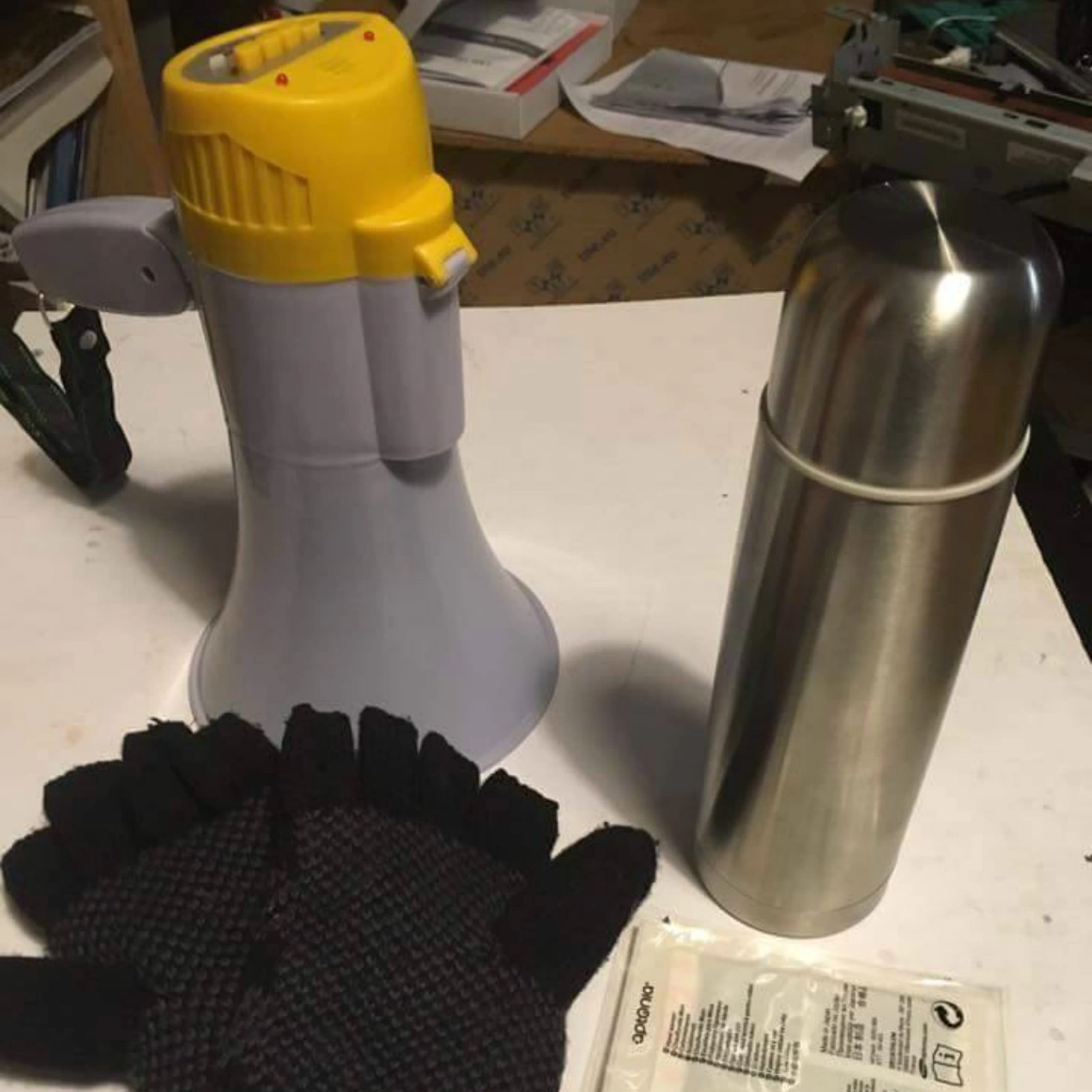 Termos cu ceai, mănuși, un plasture cald, pe care mă gândeam să-l fac cadou, și o portavoce. Marți noaptea am plecat complet nepregătit pentru a sta câteva ore în frig. Și nu eram singurul care îngheța, aşa că am zis ca de data asta să îmi iau măsuri. (Paul Popescu, Modulab)