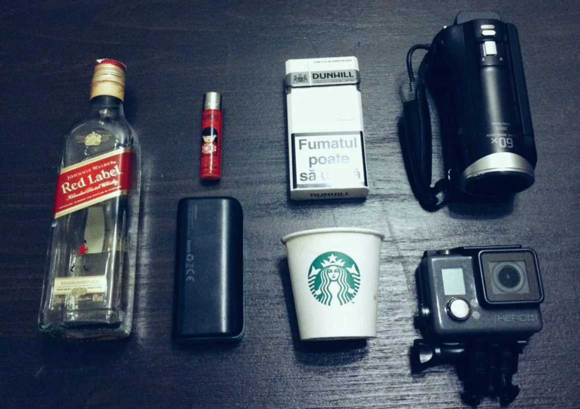 Fular anti-gaze lacrimogene, căciulă şi mănuşi (căciula serioasă e la spălat), încărcător mobil (nu am ales eu culoarea), mobil pentru live-uri, ţigări pentru pauzele dintre gaze lacrimogene, aparatură foto, cei mai buni covrigei şi apă. Pe lângă astea, două perechi de şosete, trei pulovere şi geaca pe mine (arăt ca Mighty Mouse). (Andreea Retinschi, fotografă)