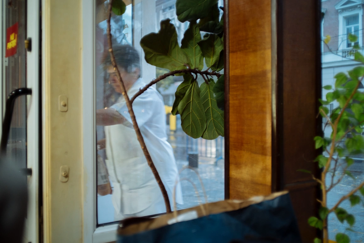 Stăm la masă și mă gândesc cu groază numa’ la ce preț ar putea avea cafeaua. Meniul sosește într-un final, și ochii mi se rotesc peste scorurile cu trei cifre. Cafeneaua e decorată în nuanțe de maroniu, cu accesorii de piele, sticlă, catifea și alte regale. Totul sobru; ospătarii par că merg pe vârfuri ca să nu deranjeze pe cineva. Mi se face cald.