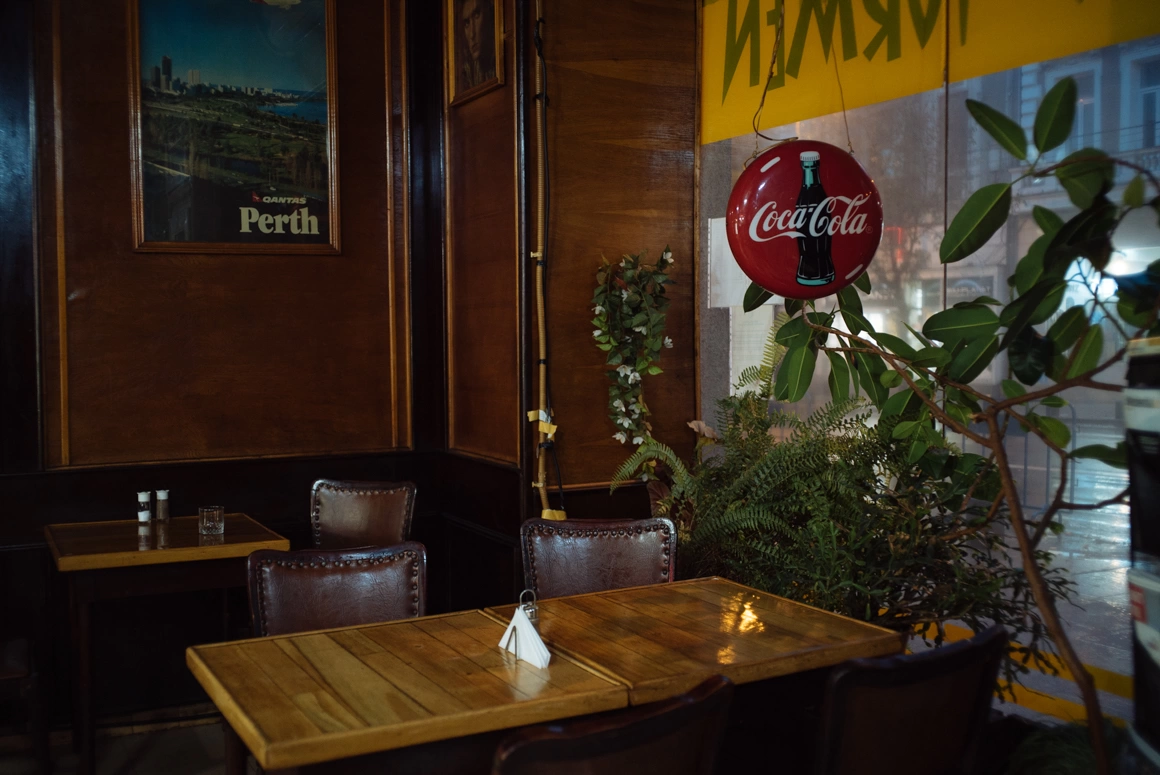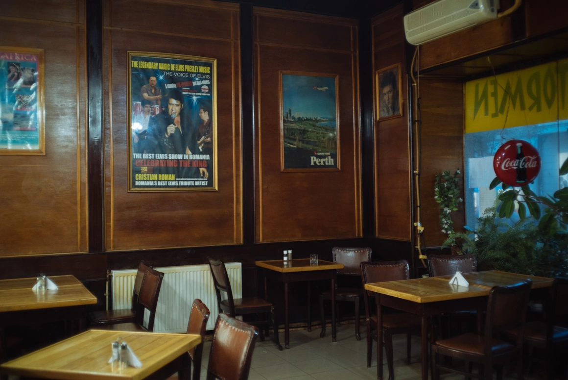 M-am reîntors acolo luna asta. Oricât ar suna de patetic, aveam emoții. Cred că îmi era frică să nu se fi schimbat ceva la decor. Nu s-a schimbat nimic, dar teama că o s-o facă rămâne. M-am așezat la o masă lângă fereastră. Printre plantele mari, decorative, strada plouată se vedea ca dintr-un acvariu uriaș. Într-un frigider - fix două sticle de Pepsi. Pereții, toți trei din lemn, mă făceau să mă simt ca pe o corabie veche și modestă. Tot pe pereți, înrămate, au rămas niște afișe mari. Unul care anunță un concert cu vocea care îl imită cel mai bine pe Elvis, altul care recomandă orașul Perth, din Australia, ca super destinație turistică. Țin minte afișele astea de acum aproape 10 ani, dar îmi e clar că sunt acolo de și mai mult timp, la fel cum și doamna ospătăriță și colegele ei de la bucătărie sunt sigur acolo de când eram eu mic.