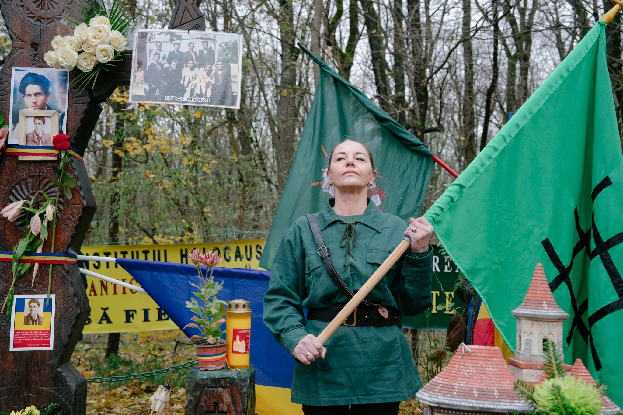 Doi băieți până-n 20 de ani chicotesc când aud că a venit presa. „Au venit legionarii, tineretul ăsta pierdut! De ce nu votați bărbat cu bărbat?!”, își imaginează unul dintre ei că vor spune jurnaliștii. E îmbrăcat în palton de piele neagră și figura lui mi-e familiară de la o altă comemorare legionară la care am participat, unde purta un tricou al organizației ultranaționaliste „Comunitatea Identitară”. Această organizație dedicată tinerilor neolegionari a apărut în 2019 și are filiale în mai multe orașe ale țării. Militează pentru regăsirea unei identități tradiționale, centrate pe „ortodoxie și naționalism”. Președintele „Comunității Identitare”, Codrin Goia, e prezent și el. Fost membru al partidului extremist Noua Dreaptă, Goia a întrerupt în 2017 un spectacol al Operei din Cluj, alături de un extremist cu vizibilitate, Călin Mărincuș, pe motiv că pe scenă se cânta în arabă.