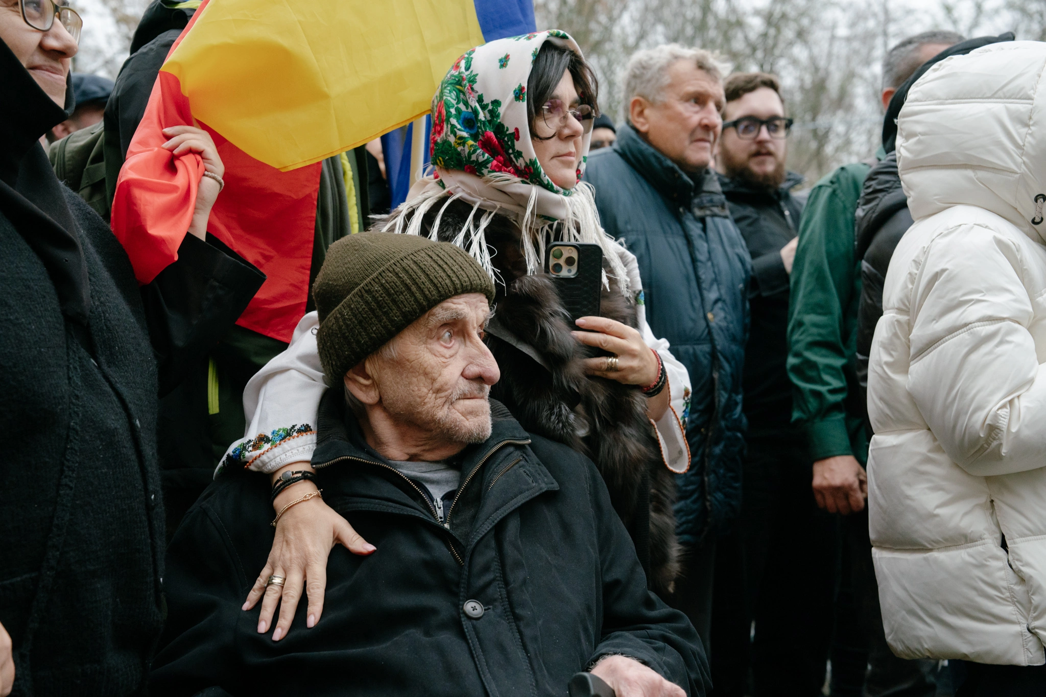 „Am votat cu Simion pentru că el părea să aibă cele mai multe șanse din tabăra naționalistă”, îmi spune după slujbă un bărbat de 30 de ani. La turul doi al alegerilor prezidențiale, va vota cu Călin Georgescu, de care a auzit acum mai mulți ani și pe care spune că îl respectă. După zece ani în care a locuit în Danemarca, bărbatul povestește că s-a întors în România pentru că simte că țările din vestul Europei sunt din ce în ce mai îndepărtate de religia creștină. „Negarea spiritualității alienează omul”, adaugă el. „Trăim un nihilism în societate. Dacă ai elementul ăsta comun, care este Dumnezeu, dacă ai o etică legată de Dumnezeu, asta oferă un sens existenței oamenilor”. Bărbatul zice că nu crede în dictatori și are „o poziție de neutralitate” față de Putin, dar găsește lucruri de admirat la țara condusă de el. „Ceea ce Rusia are și, din păcate, Occidentul nu mai are, e elementul creștin”. Spune că e prima oară când vine la comemorare, despre care a auzit de la prietenii mai conservatori și de pe social media.