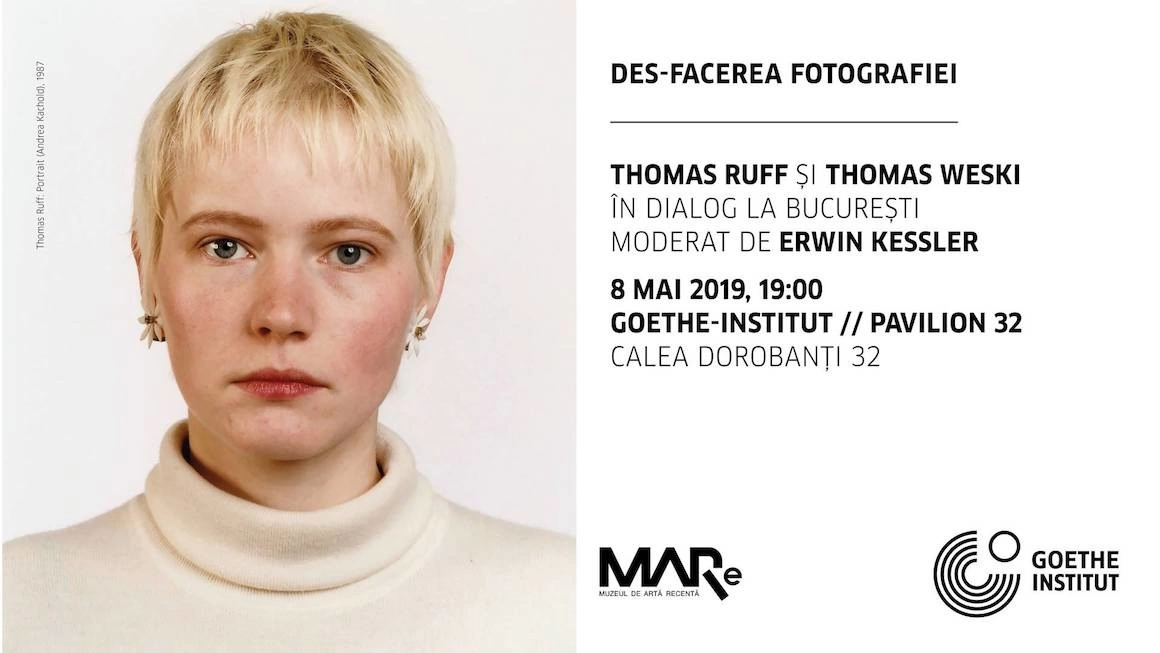 Cu ocazia expoziției Thomas Ruff: Photophilia (MARe/Muzeul de Artă Recentă, București, 7 mai – 2 septembrie 2019), va avea loc și o întâlnire cu Thomas Ruff (n.1958), unul dintre cei mai importanți fotografi contemporani europeni, și curatorul de fotografie Thomas Weski. Dezbaterea va fi moderată de Erwin Kessler. Reprezentant al școlii de la Düsseldorf, Ruff este un artist complex, care a experimentat & explorat diverse direcții (a colaborat și cu Michel Houellebecq la cartea Nudes) și a avut o influență puternică asupra multor fotografi tineri. Lucrările lui Ruff se găsesc în colecții precum cele ale The Art Institute of Chicago, The Tate Gallery, Kunstmuseum Basel, MOMA, Moderna Musee din Stockholm ș.a.