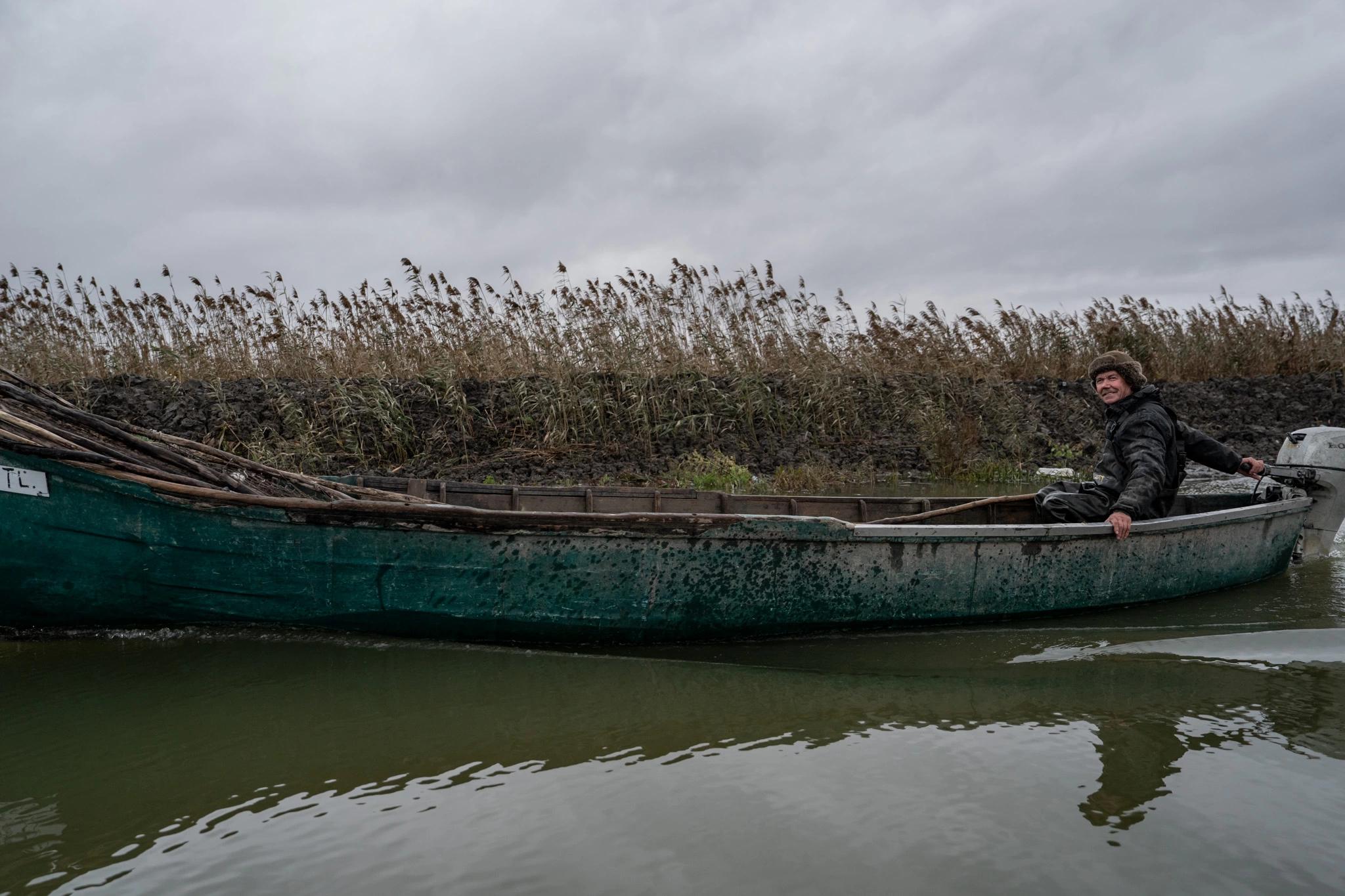 „Vremea s-a schimbat foarte mult”, continuă el, „înainte erau geruri puternice, îngheța două-trei luni balta. Acum, după 20-30 de ani, nu mai avem iarnă. Geruri nu mai avem, dar sunt furtunile astea foarte puternice. Nu ieșim la pescuit, ne distrug sculele. Era mai bine dacă era ger, se reproducea și peștele mai bine.”
