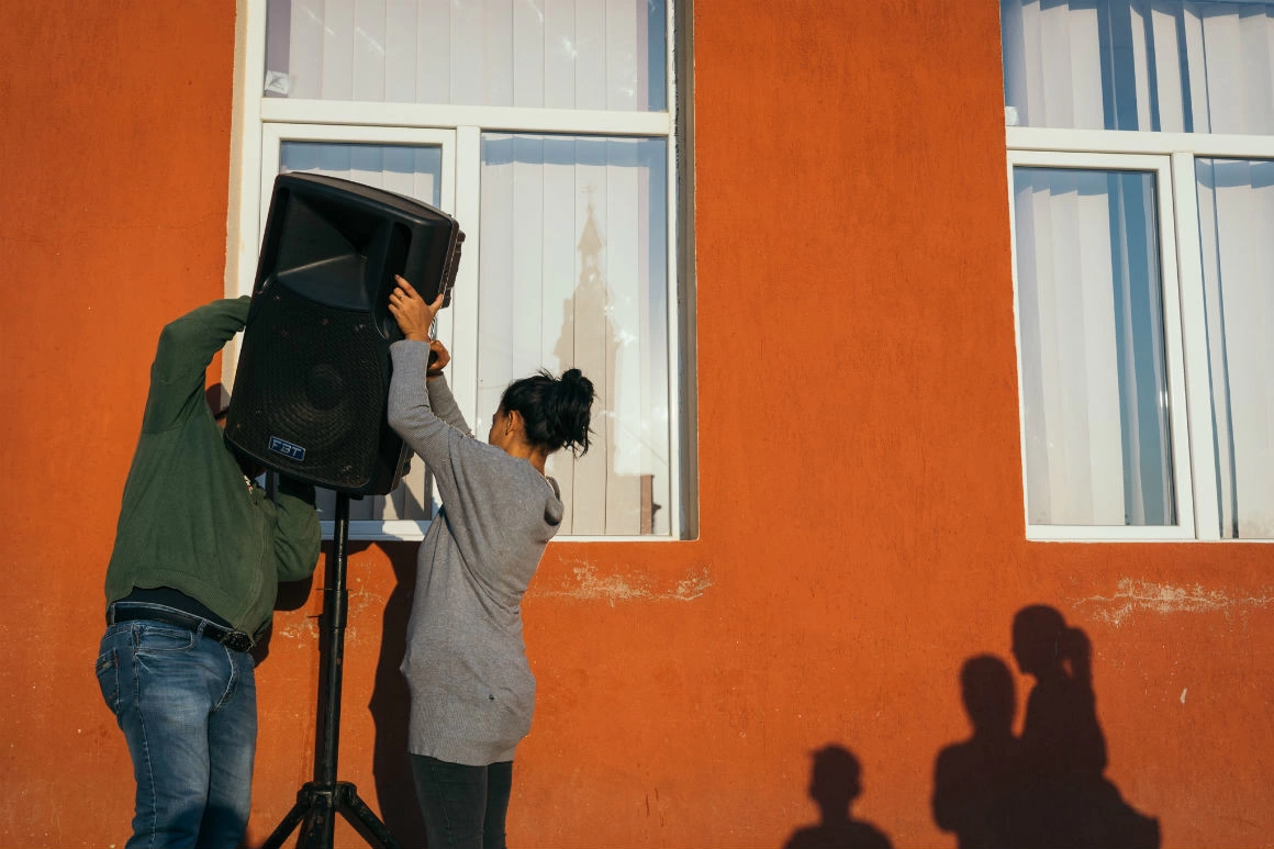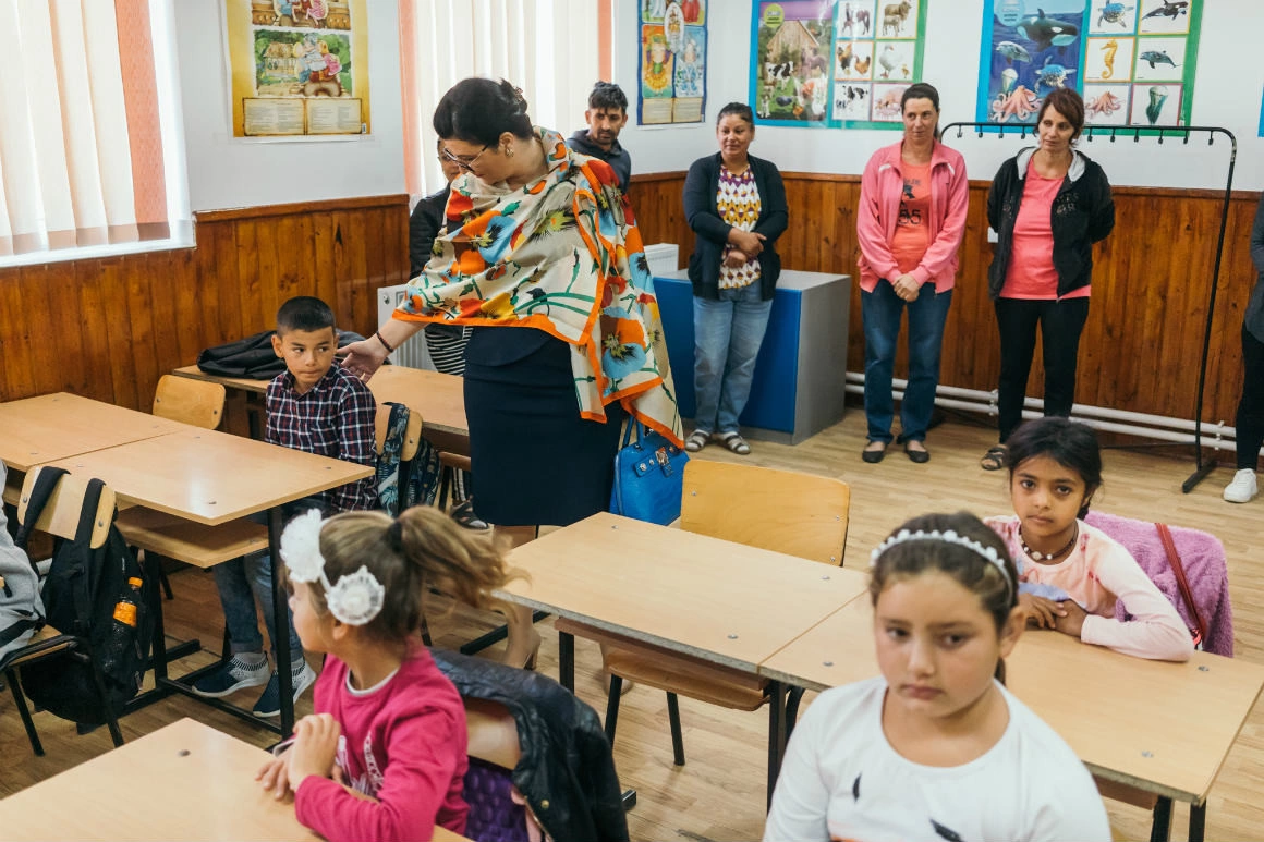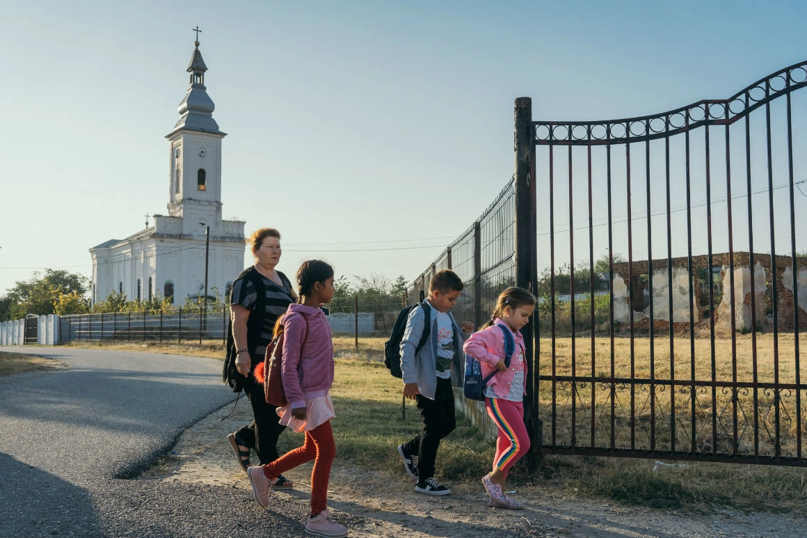 În timpul ăsta, câțiva vlăjgani montau afară sistemul audio, dar preotul care trebuia să țină slujba n-a mai ajuns. Au venit primarul și inspectoarea, pe care părinții și copiii i-au așteptat o jumătate de oră în curtea școlii, fără să aibă voie să intre în clădire. Vreo 20-30 de copii au fost aduși la școală de părinții, bunicii sau frații lor mai mari. Nicolas a venit cu tatăl lui, dar celălalt băiat care aparține școlii nu a mai venit la ore de miercurea trecută. Se zvonește că ar fi suspendat. Cel de-al treilea locuiește și învață în satul Milcovățu. Adulții s-au adunat în mai multe grupuri și au început să împartă pedepse. „Dacă părinții erau autoritari, nu se întâmpla asta. Dar părinții sunt divorțați, au luat-o pe căi greșite”, îmi spune Georgiana, sora unei fete de la grupa mică. „Să-și ducă copiii la școala de corecție”, pufnește ea.
