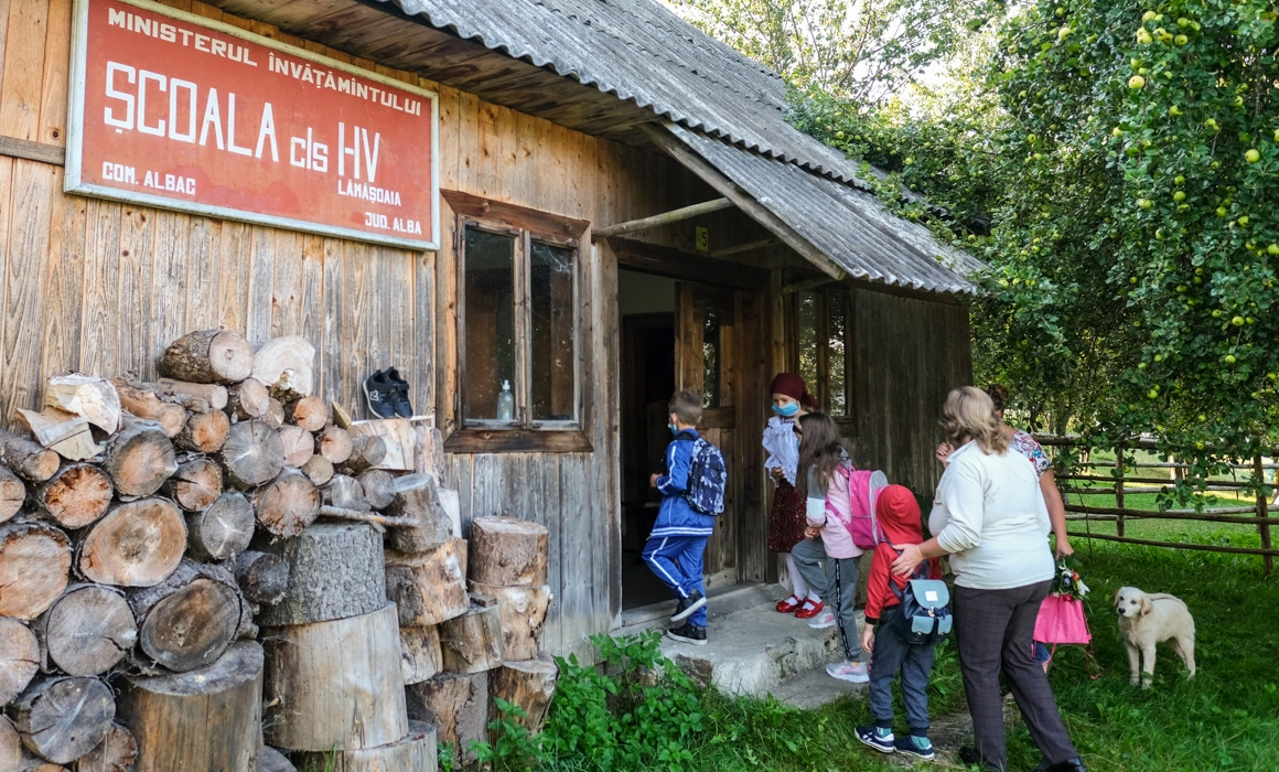 „Pe domnul primar nu-l găsiți în perioada asta, că este în campanie electorală”, îmi spune amabil un funcționar al primăriei. Convins fiind că îl găsesc totuși la școala din Dealu Lămășoi, cu pregătiri pentru noul an școlar, încep urcușul. La școala care îi așteaptă peste câteva zile pe cei șase elevi, împărțiți în patru clase, e însă pustiu. Noroc cu Claudiu, un băiețel de 11 ani, fost elev al școlii, care ne prezintă căsuța aflată chiar în ograda familiei lui. Școlile care deservesc satele răsfirate din Apuseni sunt fie case închiriate de la localnici, fie aflate în proprietatea statului, și arată la fel ca în anii '60, când au fost date în folosință. Lui Claudiu nu îi plăcea în primele clase, că erau puțini copii și nu avea cu cine să se joace. Și tatăl băiatului, acum plecat la munte la adunat de ciuperci și fructe de pădure, a mers la aceeași școală primară și în aceleași condiții. Acum, Claudiu e încântat de școala gimnazială din comună.