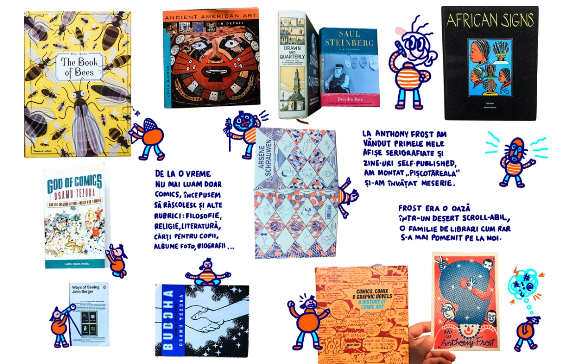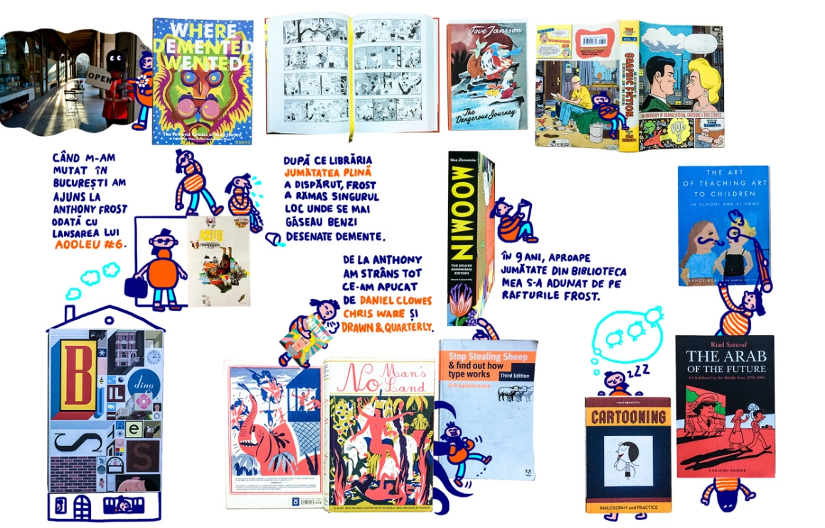 Când am aflat că „Anthony Frost” se închide, am simțit că pierd mai mult decât o librărie frumoasă, pentru că „Anthony Frost” era locul de la sine înțeles în care mergeam împreună cu soțul meu atunci când spuneam „hai să ieșim în oraș”. Suntem oamenii plăcerilor casnice greu de convins să plece de acasă. Drumul periodic la „Anthony Frost” ne oferea o ieșire din cotidian fără a depăși o zonă de confort autoimpusă: un spațiu cald și liniștit cu multe cărți pe pereți, așa cum e acasă. Nu avem pasiuni în comun; eu sunt fană Beyonce, el Prâslea, eu ascult This American Life, el Hardcore History, eu citesc Elena Ferrante, el despre Lenin, iar meseriile nu ni se întâlnesc nicicum. Nu m-am întrebat niciodată până acum de ce „Anthony Frost” ne unea într-o bucurie împărtășită cum alte librării n-o făceau. Cred că reprezenta, prin Vlad, echipa lui și oamenii care le călcau pragul, simbolul bunătății și al onestității, un idealism care ne unește profund dincolo de pasiuni. Până la următorul „Anthony Frost”, nu știu unde vom mai ieși în oraș. Probabil vom rămâne acasă.