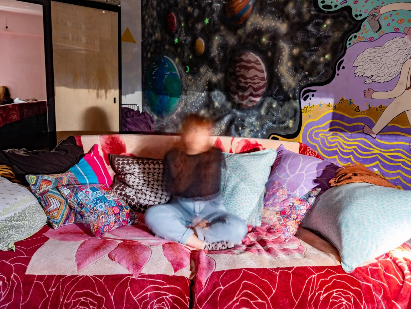După ce am ajuns aici, am intrat într-o relație „foarte mișto”, unde am simțit cele mai „frumoase” stări de singurătate, de neputință și abandon. Totul s-a întâmplat foarte repede. El s-a mutat cu mine unde stăteam în chirie. Avea și o relație nașpa cu ai lui, care erau divorțați. Eu eram la modul: „Se mută atât de repede cu mine? Ce tare, sunt băgată în seamă.” Având atașament anxios și primind atenție, credeam că gata, e dragostea vieții mele, cu el mă căsătoresc. Mi se părea că stau în casă cu un om foarte șmecher și că aveam multe lucruri în comun. Fiind artistă vizuală, tind să visez la lucruri și mi-am dorit întotdeauna ca partenerul meu de viață să-mi fie muză. Poate că sună un pic greșit, dar pentru mine contează destul de mult. Am crezut că găsisem chestia asta în el.