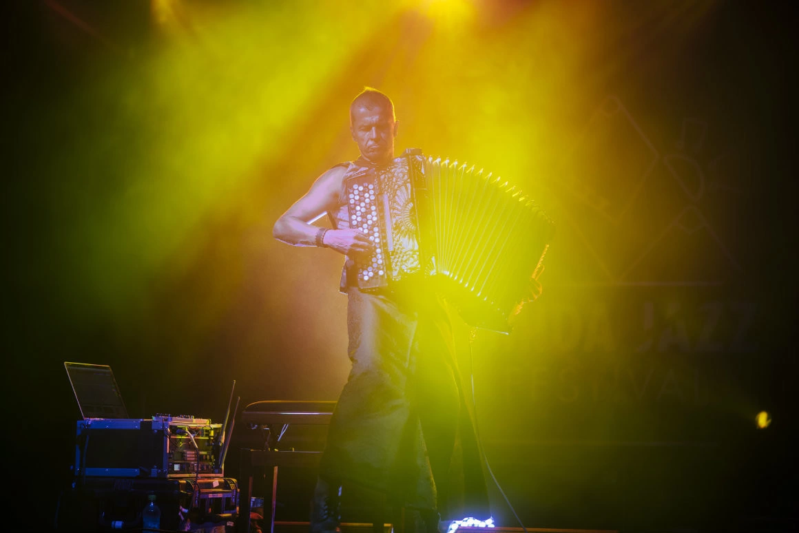 După Barabás Lőrinc Quartet, cu molotovul lor de sunete racolate din jazz, blues & Béla Bartók, pe tronul de pe scenă se instalează Kimmo Pohjonnen. Finlandezul despre care se spune că a reinventat acordeonul (și-ți dai seama că fix asta a făcut imediat cum începe să cânte) pare aterizat din Mad Max. Are ceva de personaj post-apocaliptic, iar instrumentul lui steampunk, pe care și l-a hibridizat să fie și analog, și digital, e parte din el. Nu degeaba, atunci când își desprinde acordeonul de corp, Kimmo se poartă de parc-ar fi incomplet și l-ar durea despărțirea, și-atunci gemetele lui trec prin cabluri și software și se ridică deasupra mulțimii. Muzica lui Pohjonnen (care, după cum zicea cineva, „sună ca și cum ar fi fost exilat pe Marte cu tot cu acordeon”) nu seamănă cu nimic altceva. Se plimbă prin subconștinetul sonor al omenirii, de unde scoate la iveală frânturi noise, secvențe din sertarul cu „avangardă”, flash-uri aproape folclorice (în fond, el cu folclor și-a și început aventura ca artist), crâmpeie din balade nostalgice, beat-uri de trance și drum’n’bass. De altfel, muzica lui e în egală măsură de ascultat și de văzut, fiindcă Pohjonnen e tot numai un dans printre pedale și cabluri, între laptop și instrumentul nebun, între public și întinderile din capul lui, de unde transmite live. Din corpul lui se ridică aburi, aburii se fac una cu ceața, ceața se face una cu acordeonul ăla care până la el n-a mai sunat niciodată așa, și nu mai știi exact ce te-a lovit, dar nici c-ar conta.