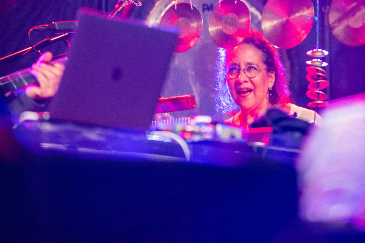 Cu toate astea, e încă de-ajuns să te uiți în jur, unde verdeața e proaspăt îmbăiată și soarele bagă efecte speciale, să-ți umpli plămânii cu aer și să rămâi locului. Urmează imediat și cel mai bun antidot pentru absent-mindedness: Spirit Cave, cu invocațiile lor abstracte. Spirit Cave înseamnă patru super-artiști, printre care Marylin Mazur, percuționistă și compozitoare care, împreună cu numeroși muzicieni, a făcut tot felul de revoluții sonore. Mazur (daneză cu rădăcini poloneze și afro-americane și copilărie americană) e cea care i-a convocat pe trompetistul-pionier Nils Petter Molvær, Jan Bang (maestru într-ale sunetului digital) și Eivind Aarset (chitarist cu istorie în schimburi jazz-electronica) să-și facă de cap împreună, la maturitate. Întâlnirea lor are libertatea unei improvizații și precizia pe care doar niște exploratori cu multă experiență o pot avea. Prezența lui Mazur la altarul ei de tobe & nenumărate instrumente de percuție (înconjurat de-o armată de clopoței) e în sine o poezie: o femeie pe scena jazz-ului, majoritar masculină, ba mai mult, o femeie la tobe, instrument pe care aproape invariabil îl iau în stăpânire bărbații, o femeie care-ți arată într-o oră câte nuanțe poate avea percuția, și care construiește scheletul subtil al pieselor Spirit Cave.