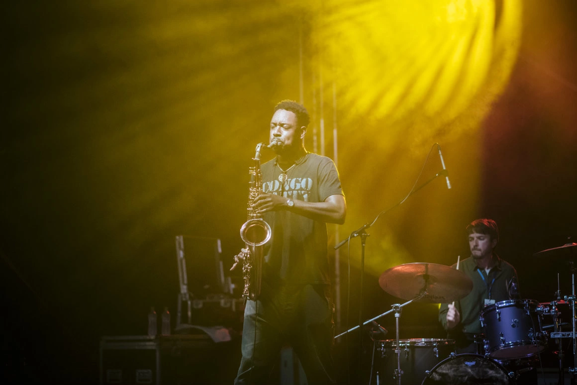 Lovitura finală (fiindcă altceva n-are cum să fi fost) vine de la Sons of Kemet, cei patru „perpetuum-mobile” proaspăt nominalizați la Mercury Prize pentru albumul lor Your Queen Is a Reptile. Din secunda în care urcă pe scenă și până la ultimul suflu al saxofonului, muzica lor e o cursă de carusel care-a luat-o razna, de-o intensitate așa dementă, că aproape nu mai poți să-i ții piept. Shabaka Hutchings, cu rădăcinile-nfipte în școala de muzică londoneză și-n carnavalurile aiuritoare din Barbados, pare să fi depășit demult legătura muritorilor cu instrumentele și să fi ajuns într-o cu totul altă dimensiune, unde a ajuns să cânte la post-saxofon. Tovarăș de transă, pe fundalul de ritmuri tribale al celor două seturi de tobe, îi e Theon Cross, cel mai probabil primul artist care i-a făcut pe cei din public să danseze pe un solo de tubă. Shabaka și Theon se duelează cu instrumentele în care suflă cu forță inumană, pentru ca imediat să se-ntoarcă prietenește la laitmotivele caraibiene, și fix când te-a prins ritmul, saxofonul te ia cu el într-o improvizație febrilă. La final, ești ca proaspăt scos de la centrifugă, exorcizat, gata s-o iei nou-nouț de la capăt.