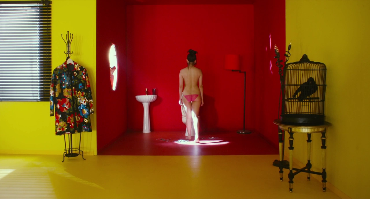 În Antiporno, Kyoko (Ami Tomite) e ca o prințesă prinsă într-un habitaclu artificial, dominat de culori tari, format din trei pereți și jumătate. Rutina ei e atât de fixă, încât uită până și să tragă apa la toaleta ei improvizată. Drumurile și cântecele ei solitare o transformă într-o zână plictisită, care trăiește din niște vizite pe care le primește de la niște vedete și desenele sprijinite de perete. Încă de la început, artificializarea decorurilor și exagerarea jocului protagonistei dau impresia că totul este un spațiu improvizat (travelling-uri făcute de aparatul de filmat din spatele tablourilor, mișcările lente de aparat), dictat de mai multe fetișuri masculine: doarme cu chiloții în vine, se mișcă grațios, iar ținutele ei sunt străvezii. La ele se adaugă, treptat, tot felul de ieșiri sadice forțate, după ce își obligă asistenta (Mariko Tsutsui) să stea în patru labe și să fie violată cu un strap on de o tipă pixie. E o chestiune de timp până să se strige cut, ceea ce se și întâmplă. Echipa de filmare, formată exclusiv din bărbați îmbrăcați în negru, pășește pe set și e complet nemulțumită de performanța lui Kyoko. Filmul lui Sion Sono însă nu e nici despre cum se toarnă un film porno, nici despre sex propriu-zis. E ceva dincolo de asta, de fapt.