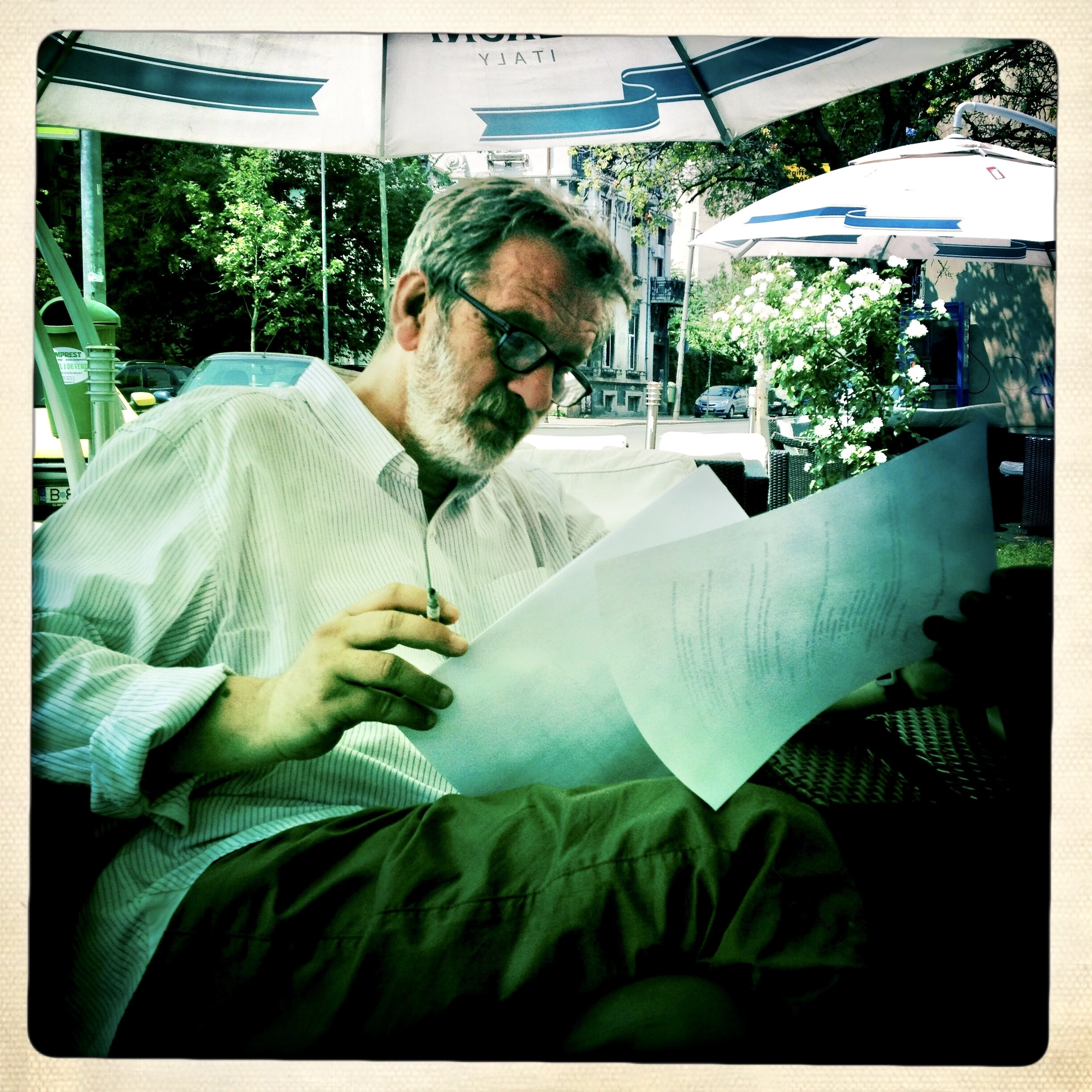 În februarie 2019 mă întâlnesc cu el întâmplător la Cărturești. Îmi dau seama că nu ne-am văzut de mult, că între timp mi-am schimbat numărul de telefon, i-l dau pe cel nou și ne promitem să ne vedem la o cafea când mai ajung prin București. Îi spun că lucrez cu Vlad Petri la documentarea unui spectacol, îmi spune că știe deja și pentru o secundă văd în zâmbetul din privirea lui atitudinea șugubeață: știe mai multe despre ce mai fac eu decât știu eu despre ce face el.