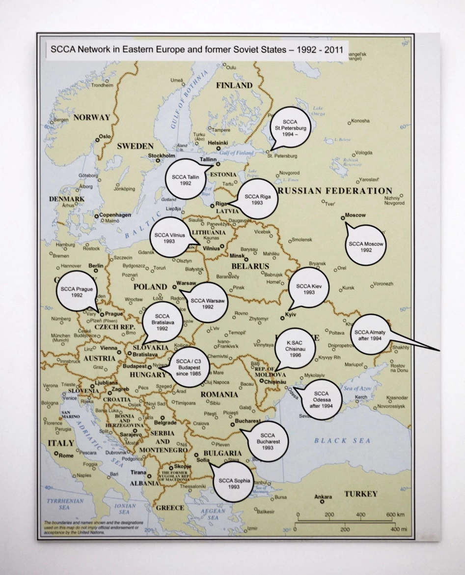 O categorie de exponate mult mai bine centrate pe tema aleasă este formată dintr-o documentație sumară de lucrări făcute cu sprijinul Centrelor Soros în Est, dublată de o serie de hărți cu rețeaua de instituții din regiune.