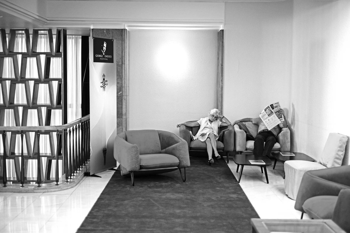 Acum câţiva ani am fost la un concert la Sala Radio, dirijat de Iurie Florea, cu aparatul pe film la mine. Am ajuns mai devreme, așa că încet-încet am început să observ oameni pe care nu prea îi vedeam pe străzi. Ținutele, cel puțin, îi făceau deodată mai vizibili. Mi-am dorit încă de pe-atunci să pot documenta spectatorii care vin la evenimente de felul acesta. Așa că de-a lungul ultimelor săptămâni, cât a ținut Festivalul George Enescu, am mers aproape zi de zi la Sala Palatului, pentru a prinde în fotografii lumea de dincoace de scenă. Cam asta a ieșit: