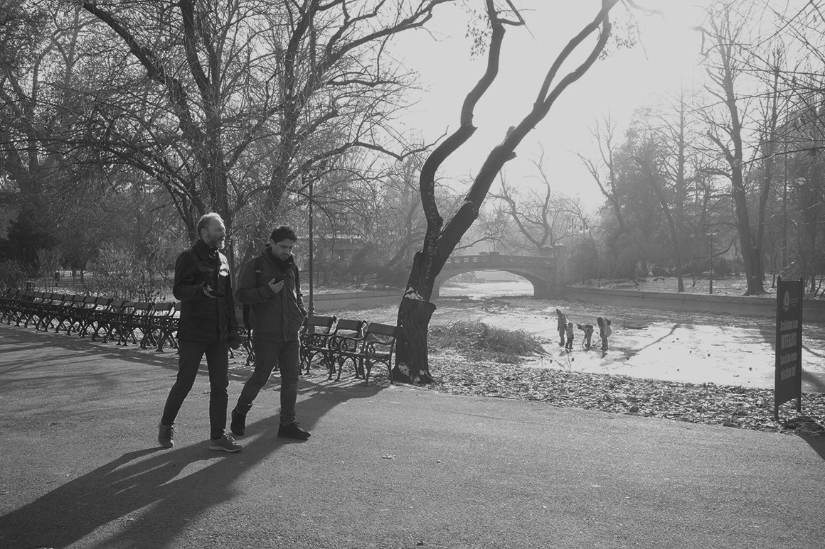 Am coborât dinspre Victoriei spre Brezoianu, ne-am strecurat printre mașinile îngrămădite pe trotuare, și apoi am intrat în Cișmigiu, care era aproape gol. A început să-mi povestească despre casa în care trăiește, aflată undeva lângă pădure, în afara Reykjavíkului, și despre câinele lui, în vârstă de 7 ani, care-l însoțește mereu la alergat. L-am întrebat dacă alergatul îl ajută la scris. „Hm, nu știu sigur, poate. Atunci când alerg, chestiile despre care scriu devin oarecum mai clare și se filtrează prin mine. Problema e că îți vin niște idei și apoi te îngrozești că o să uiți toate gândurile astea geniale.”