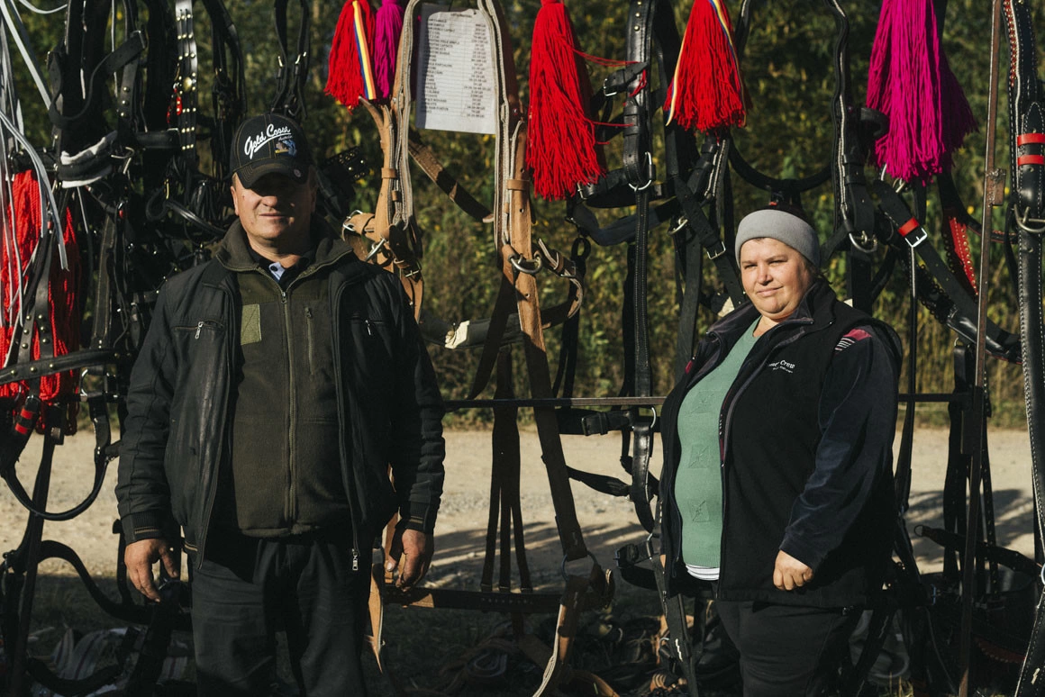 Elisabeta și Petru vin dintr-un sat din județul Bistrița-Năsăud. Trăiesc din ceea ce produc în gospodărie și din vânzarea de harnașamente pe care le fac singuri. Cel mai scump produs pe care-l aveau e un ham la 600 de lei, la care au lucrat trei zile. De anul trecut, când s-au închis târgurile de animale, le e tot mai greu să-și vândă produsele.