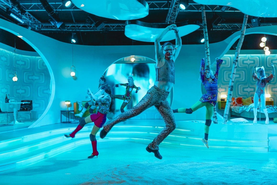 Spectacolul de la Constanța mi-a adus în memorie una dintre creațiile vechi ale lui Afrim, Plaja, la Teatrul „Maria Filotti” Brăila (2008, cred) în care două cupluri își dizolvau reciproc angoasele pe malul mării, într-un hotel părăginit al cărui proprietar (personaj inventat în repetiții), jucat magistral de Marius Manole, lua forma unui crab. Față de explozia de culoare și construcția multistratificată din Teatro Lúcido …, Plaja era un spectacol „cuminte”, dar melancolia chinuitoare a acelor cupluri în plină eroziune și absurdul comic al personajului cârâitor și zburlit, înghesuit într-un colac de salvare, al lui Manole se regăsesc și în peisajul marin afrimian de astăzi. Colaborarea îndelungată a regizorului cu scenografa Irina Moscu are în Teatro Lúcido … eficiența impecabilă a unui decor haut couture (retro futurist) cu fundal smarald și alveole în care se inserează scene intime, singurătăți sau proiecții neliniștitoare cu apocalipse climatice, și un spațiu central, frontal, o zonă a realității – a celei afrimiene, desigur -, cu lumină plină, care poate deveni însă spațiul memoriei traumatice (scena violului se petrece aici, ca și povestea amorului adulterin ratat). Personajele formează un inventar de actualitate generală și personală – cupluri hetero și gay dezacordate, femei de vârste diferite cu variate formule de singurătate, tineri mai mult sau mai puțin artiști aspiranți, oameni ai legii și infractori mărunți reprezentați caricatural, ca personajele din benzile desenate.