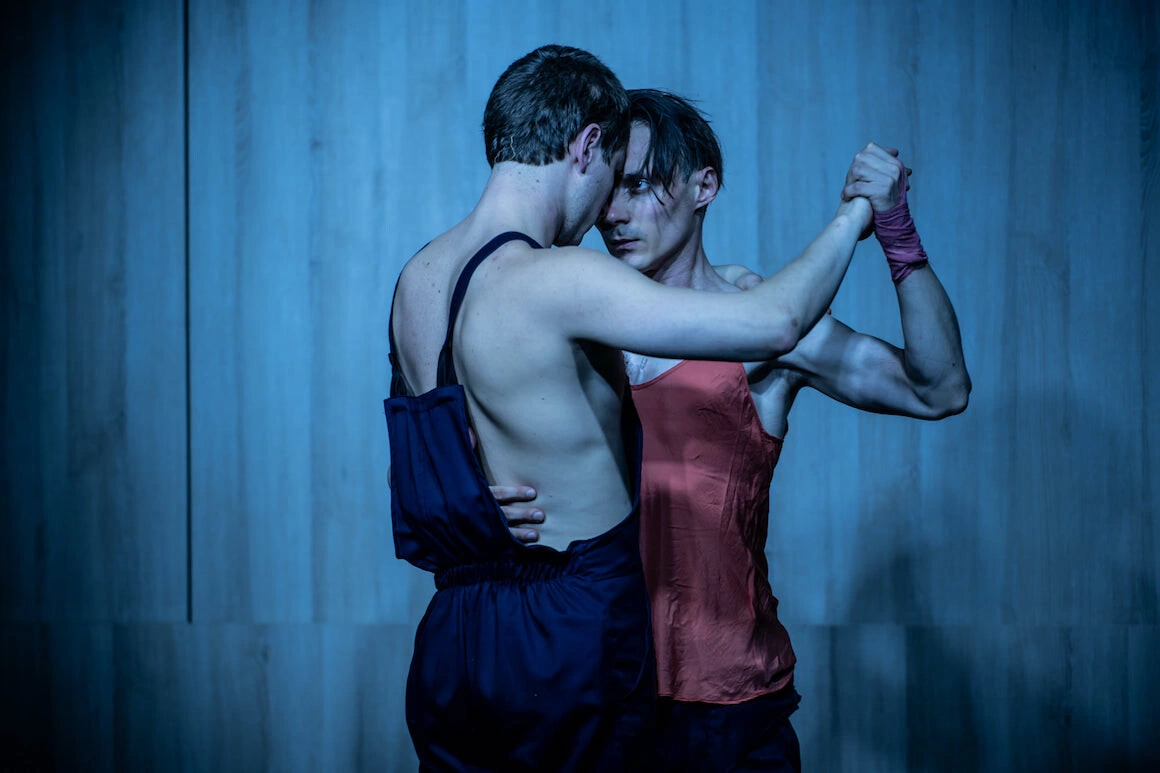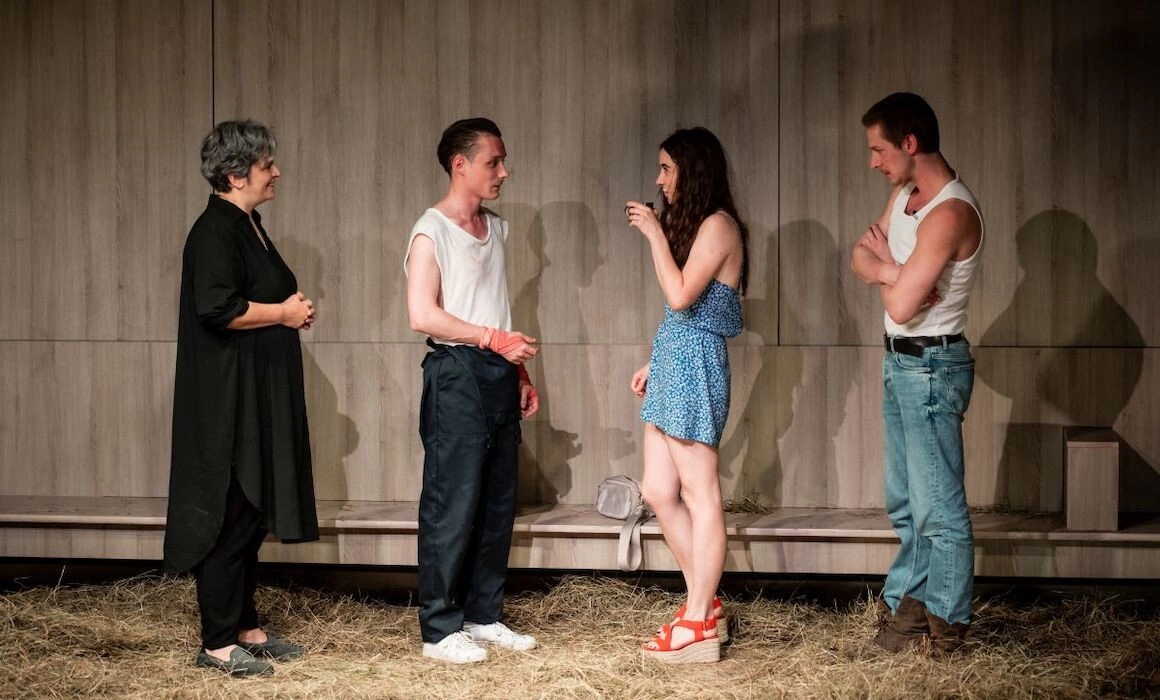 Spectacolul lui Jebeleanu începe ca o lectură într-un spațiu gol, neutru, neteatralizat, care corespunde faptului că cele două lumi, urbană și rurală, nu se cunosc. Familia celui mort nu știe nimic despre viața acestuia, iubitul lui nu îi cunoaște familia. De asta, nimeni nu-i rostește numele, el este depersonalizat, un necunoscut. Acest vid de informații se traduce printr-o schiță de spectacol. Dar pe măsură ce lumile se intersectează, personajele se încarnează, corpurile inerte capătă tonusuri erotic – agresive, spațiul se umple de teatralitate (și de fân), lectura devine spectacol. Chiar și câinele care urlă sinistru apare în spațiul de joc, e adevărat, într-o variantă adorabilă, Uber, care va cuceri publicul.