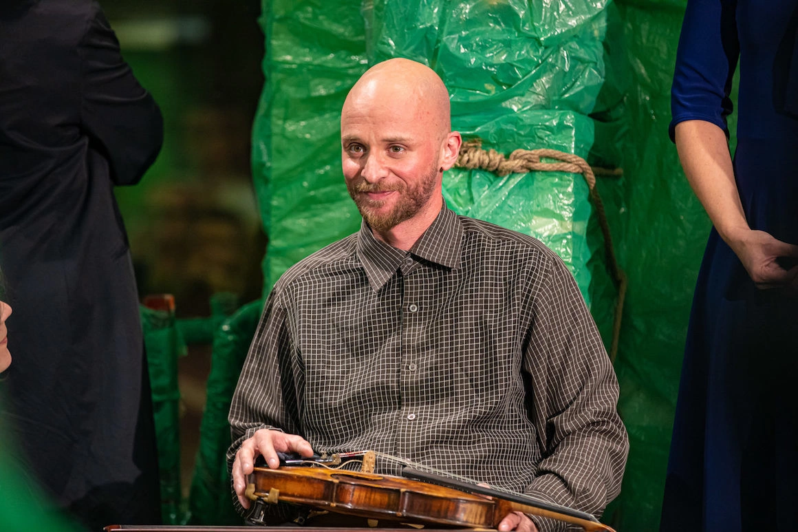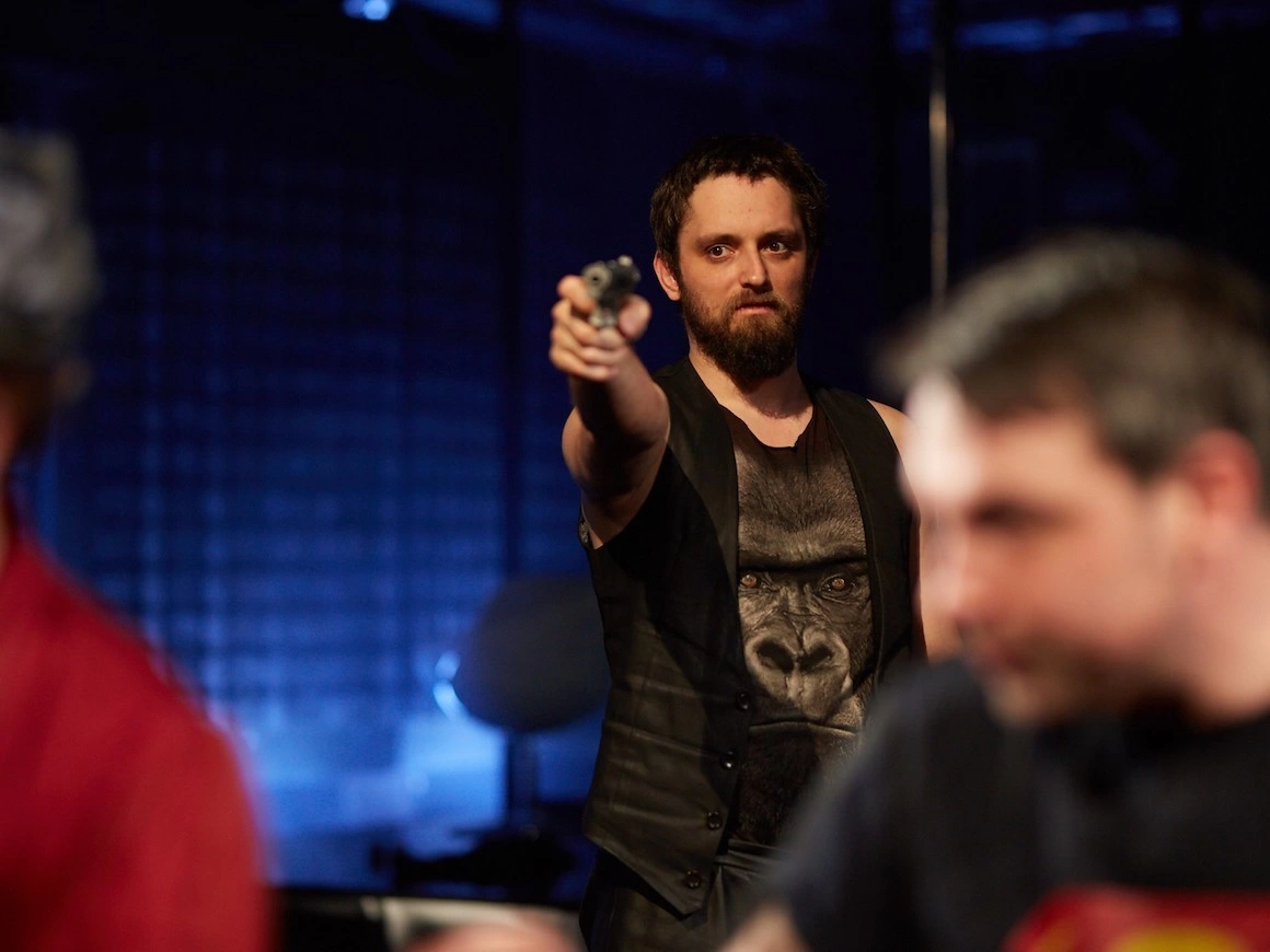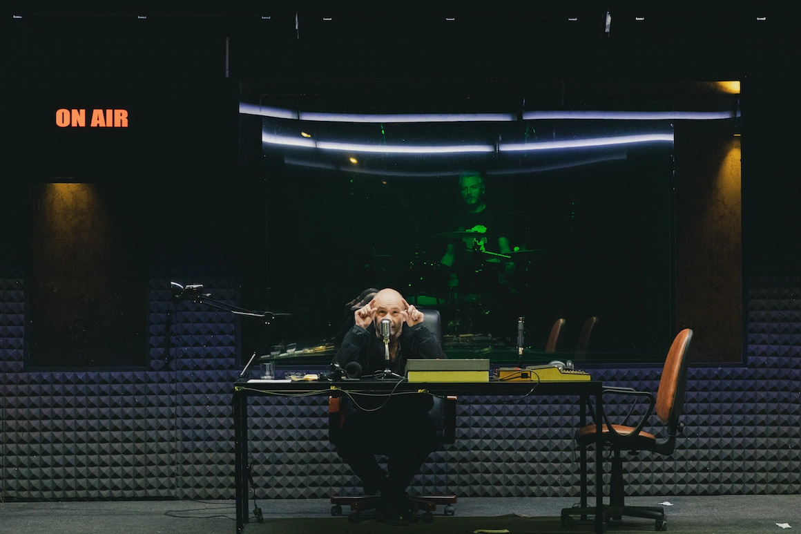 • Sorin Leoveanu în Radio - în timp ce acumulează schizofrenia personajului, actorul duce pe umeri tot spectacolul într-o singură poziţie, aşezat pe scaun.