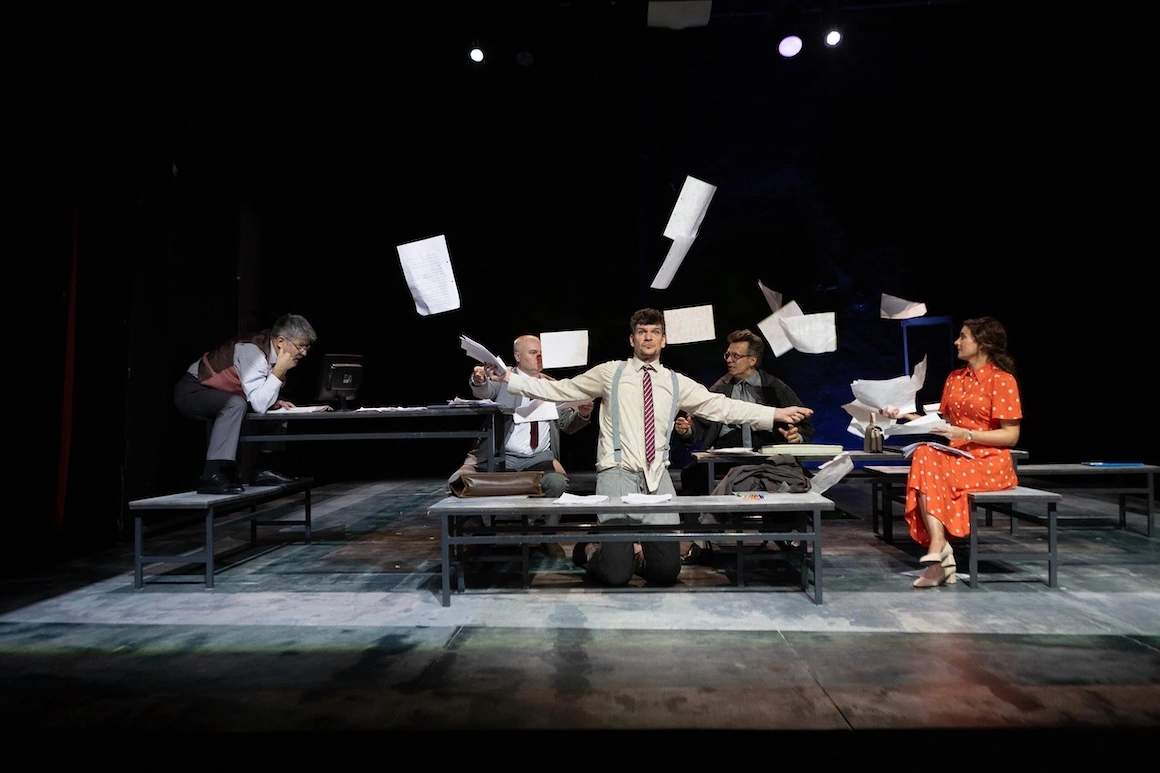 Parte din Proiect 9. Teatru românesc contemporan, spectacolul este o epopee a birocrației contemporane și face un portret nu tocmai generic al funcționarului de la stat. În stilul lui Teodor Mazilu cu tușe gogoliene, numitul Vali Ionescu / Ciprian Brașoveanu, referent la o direcție de patrimoniu, slujbaș rigid și onest, se luptă cu corupția mică, dar endemică din instituțiile publice, motivat de etica sa profesională imaculată și de o oarecare lipsă de imaginație. Pe domnul Vali îl deranjează coțcăriile șefului său / Florin Toma, comise cu complicitatea prin obediență a celor două angajate, veterana Crina / Oana Mogoș, care știe mersul lucrurilor și cum să navigheze în siguranță printre ele (râsul ei în momente-cheie are funcție de șantaj), și debutanta Iza /Elena Emandi, pasiv-agresivă în relație cu șeful și stângaci-dibaci complice și cu etica profesională, și cu corupția.