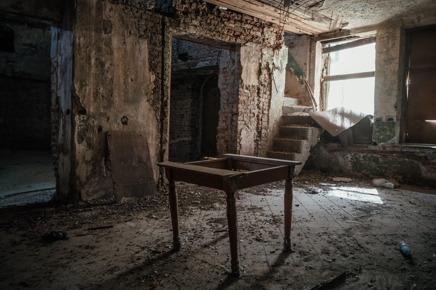 Din toate acestea, fizic au rămas doar pereții de cărămidă, scara de piatră și un acoperiș improvizat din azbociment, cu goluri care se văd cu ochiul liber de pe stradă.