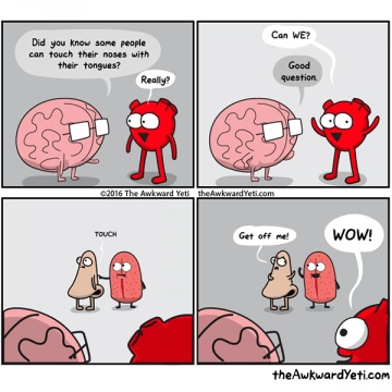 Pentru că lui Lars - numele de botez al acestui Yeti - i se conturau, încet-încet, tot mai multe însușiri, Seluk a profitat de ce învățase la facultatea de psihologie, a luat fiecare părticică din personajul său, și i-a dat mai mult contur. Așa a apărut Creierul, partea pragmatică, urmat, la scurt timp, de antipodul său, pe care dăm toți vina: Inima. A mai fost doar un pas până la antropomorfizarea tuturor organelor din corp. Vezica biliară a devenit o drăgălășenie care face, cu cele mai bune intenții, pietre. Tiroida - un rege nebun și peltic, care pierde controlul asupra supușilor săi. Limba - un sâsâit lacom, Ficatul - un workaholic veșnic nemulțumit, Splina - un ninja cool, Apendicele - un bipolar. Și tot așa.