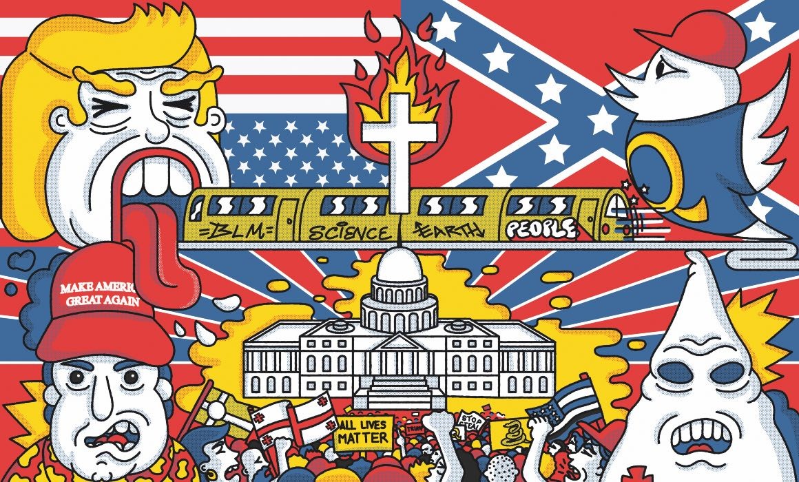 Amestecul acesta de culori și înțelesuri ascunse e rezultatul a patru ani de divizare, ură și furie, pe care Donald Trump le-a stimulat aproape la fiecare ieșire publică. Desigur, nu el a inventat rasismul, armele existau și ele dinainte, apetitul pentru conspirații e profund uman. Însă el a fost suficient de iresponsabil încât să cultive credințele și fricile americanilor, să le hrănească și să le facă să lucreze pentru interesele sale. Nimic nu e prea mult atâta timp cât aduce putere și bani, asta a învățat repede Trump. Cât steagurile astea flutură împreună, iar alții se chinuie să le coboare, rămâne timp pentru celelalte jocuri: numiri și legături scandaloase, evaziuni fiscale, grațieri. Prin toate aceste jocuri el rămâne omul din centrul atenției, iar asta e cel mai important.