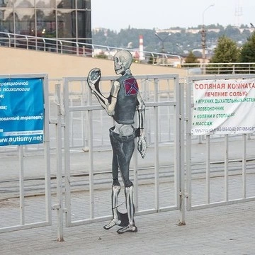 „E chiar povestea mea, am trăit asta”, mi-a spus, cu o privire întrebătoare, ca și cum voia să se asigure că îl cred. De altfel, despre propria lui poveste spune că nu e deloc unică - altele ca ea continuă să se întâmple în Donbas. Artistul povestește că atunci când a fost eliberat, i s-a spus să nu mai deseneze nimic, pentru că va fi prins și închis din nou, așa că n-a mai făcut nici măcar schițe până a plecat la Kiev. Îi făcea rău fizic să mai locuiască în Donețk, pentru că nu mai suporta imaginea oamenilor în uniforme militare. Când a plecat, a simțit că începe o nouă viață.