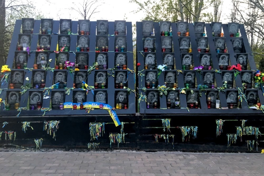 Războiul și arestările ucrainenilor au început pe Maidan, în Piața Independenței, care rămâne și azi inima orașului. Ajung acolo cu un nod în gât, același pe care-l am când revăd graffiti-urile de la Piața Universității de la Revoluția din 1989 - „Aici s-a murit pentru libertate.” Ascult Plyve Kacha, un cântec despre moarte, trist cum doar slavii știu să fie triști, pe care revoluționarii Maidanului și-au luat rămas bun de la martirii lor, în 2014. În jurul meu, în schimb, viața merge înainte. Piața e plină de tineri cu berile și „cuiele” lor, copii, militari în permisie, turiști și vânzători de nimicuri. Când te apropii de columna din mijlocul pieței, cel puțin trei încearcă să-ți vândă panglici împletite bleu-galbene, pe care să le înnozi, simbolic, de monumentele ridicate în memoria celor morți.