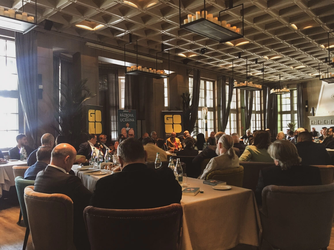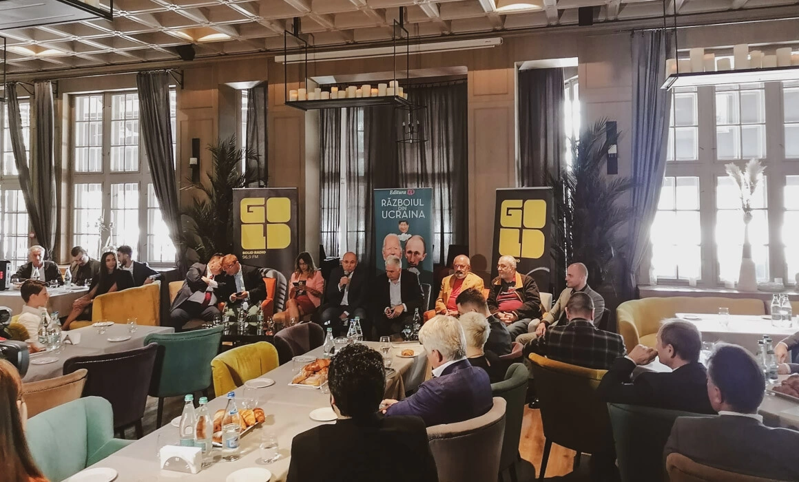 Gușă, care e și moderatorul discuției, vorbește încă din capul locului despre cum s-a format clubul de gândire Gold, dar și despre amenzile primite. „Chiar unele din textele pe care o să le citiți în carte au fost amendate, fiind considerate inacceptabile în contextul dezbaterilor despre război.”