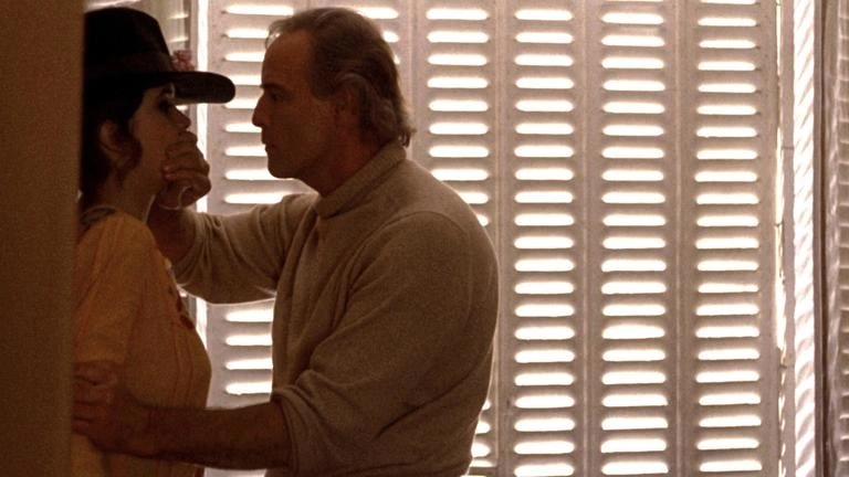 Adevărul este însă că Bertolucci îi oferă lui Brando o intrare în scenă extrem de glamorous – și de bombastică – de erou existențialist: camera de filmare execută un plonjeu asupra lui în timp ce el stă în picioare, cu mâinile la urechi, sub un pod pe care trece un tren, și strigă cu fața ridicată spre cer „Fucking God!”. (Acestea sînt primele secunde din film, după genericul care a curs peste două tablouri de Francis Bacon – portrete ale pictorilor Lucien Freud și Isabel Rawsthorne. „Vreau să recreezi și tu aceeași suferință intensă”, i-ar fi spus Bertolucci lui Brando înainte de începerea filmărilor, arătându-i tablourile.