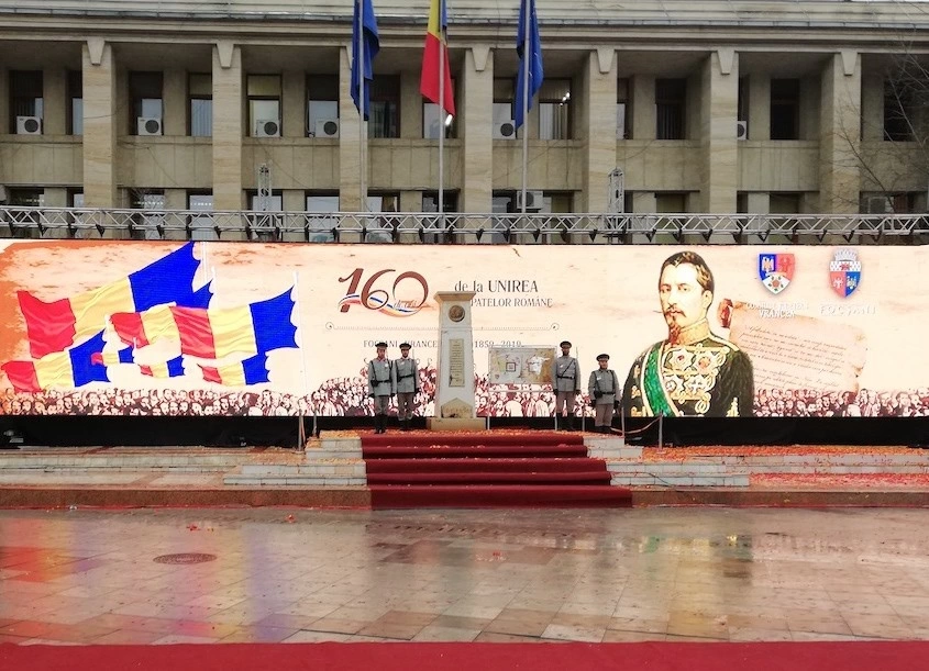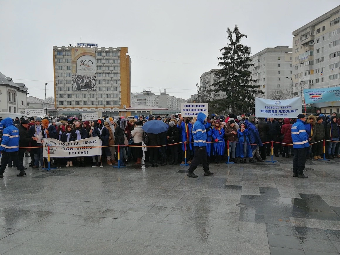 Pe tărâmul baronului vrâncean Marian Oprișan, elevii sunt chemați să-și călească patriotismul pe-un frig teribil, iar cetățenii aduși cu autocarele la sărbătoare sunt ținuți departe de hora personalităților. Am dat o fugă până la Focșani, cel mai depopulat municipiu reședință de județ din România, pentru a vedea cum mai arată Unirea Principatelor la 160 de ani distanță.