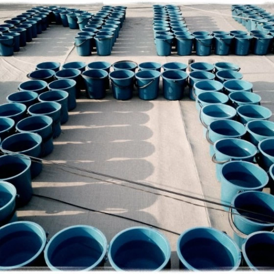 Când m-am dus să mă întâlnesc cu Biancoshock, am bătut Bucureștiul de la un capăt la altul, din Militari până-n Pantelimon, unul dintre cartierele-dormitor capitalei, care au multe lucruri în comun, cum ar fi o lipsă aproape totală de viață culturală. Am ieșit de la metrou în hărmălaia de centre comerciale și tarabe cu unelte de pescuit, în intersecția îmbăiată în miros de viermuși și momeli aromate. Am ajuns la Turnul de Apă de la fosta Postăvărie Română, pe care Make a Point l-a deschis în 2013 pentru oricine vrea să vadă orașul de la înălțime, și l-am găsit pe Biancoshock obosit, după ce timp de câteva ore umpluse 300 de găleți cu apă. Fiindcă găleata e materialul din care și-a scris lucrarea: un „NU POT” mare cât un acoperiș al fostei fabrici de textile. Mesajul lui, pe care poți să-l vezi dacă urci pe scara Turnului de Apă, rezumă felul în care a înțeles și procesat istoria cartierului Pantelimon, după ce-a citit poveștile adunate de Make a Point de la locuitori și-a citit despre București și trecutul lui comunist. „NU POT”-ul ăsta din găleți cu apă, spune el, e senzația de neputință a oamenilor captivi într-un stat totalitar, pe care-o deturnează invitând publicul să se joace. Să arunce, de la distanță, mingi colorate în gălețile cu apă și, printr-un gest copilăresc, să chestioneze neputința asta.